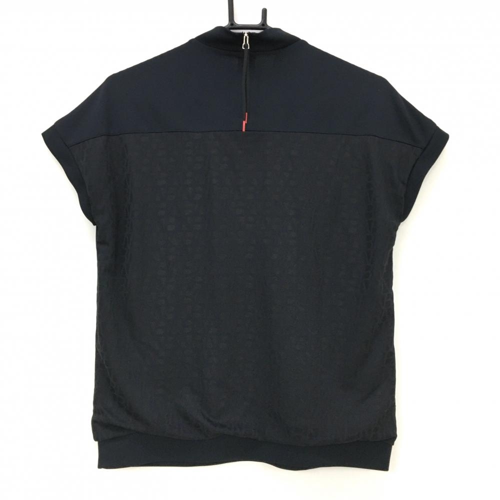【超美品】ニューバランスゴルフ 半袖ハイネックシャツ 黒 ロゴ総柄地模様 レディース 1(M) ゴルフウェア 2023年モデル New Balance