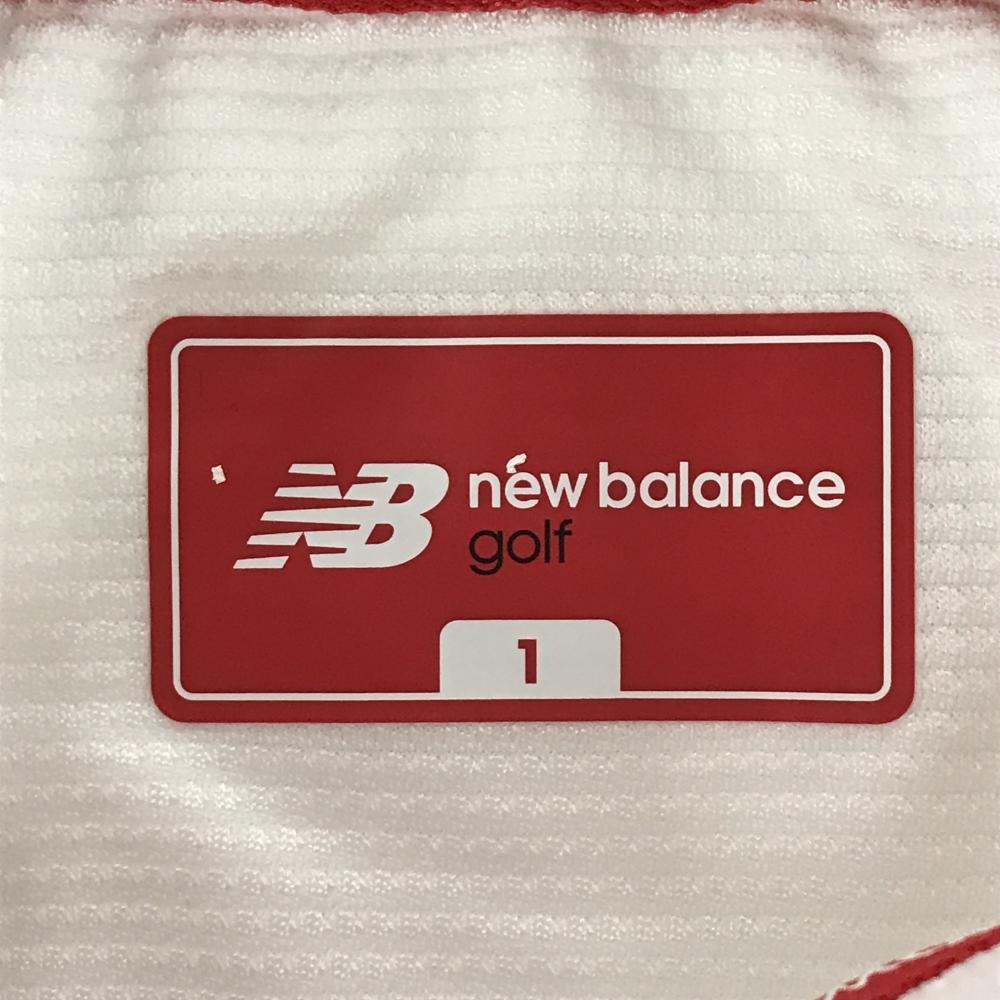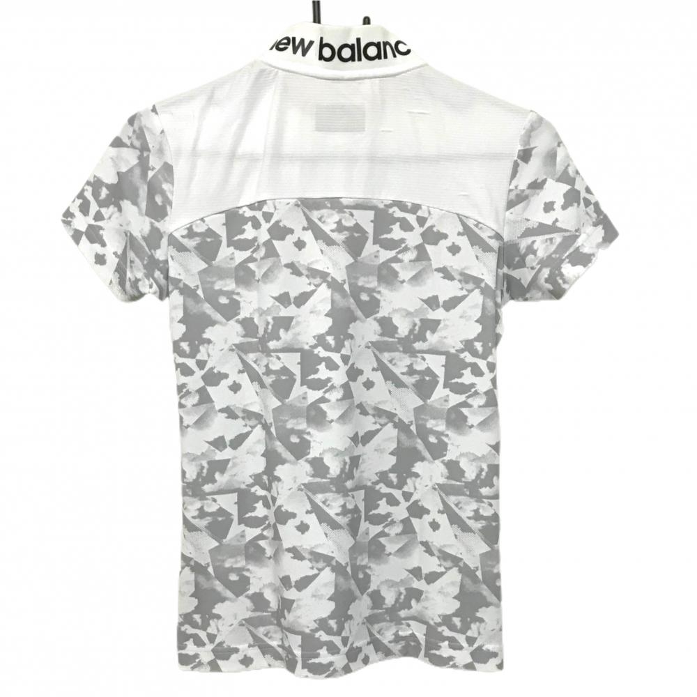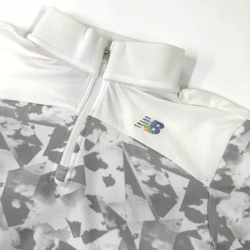 ニューバランスゴルフ 半袖ハイネックシャツ 白×グレー 総柄 ハーフジップ ネックロゴプリント レディース 1(M) ゴルフウェア New Balance