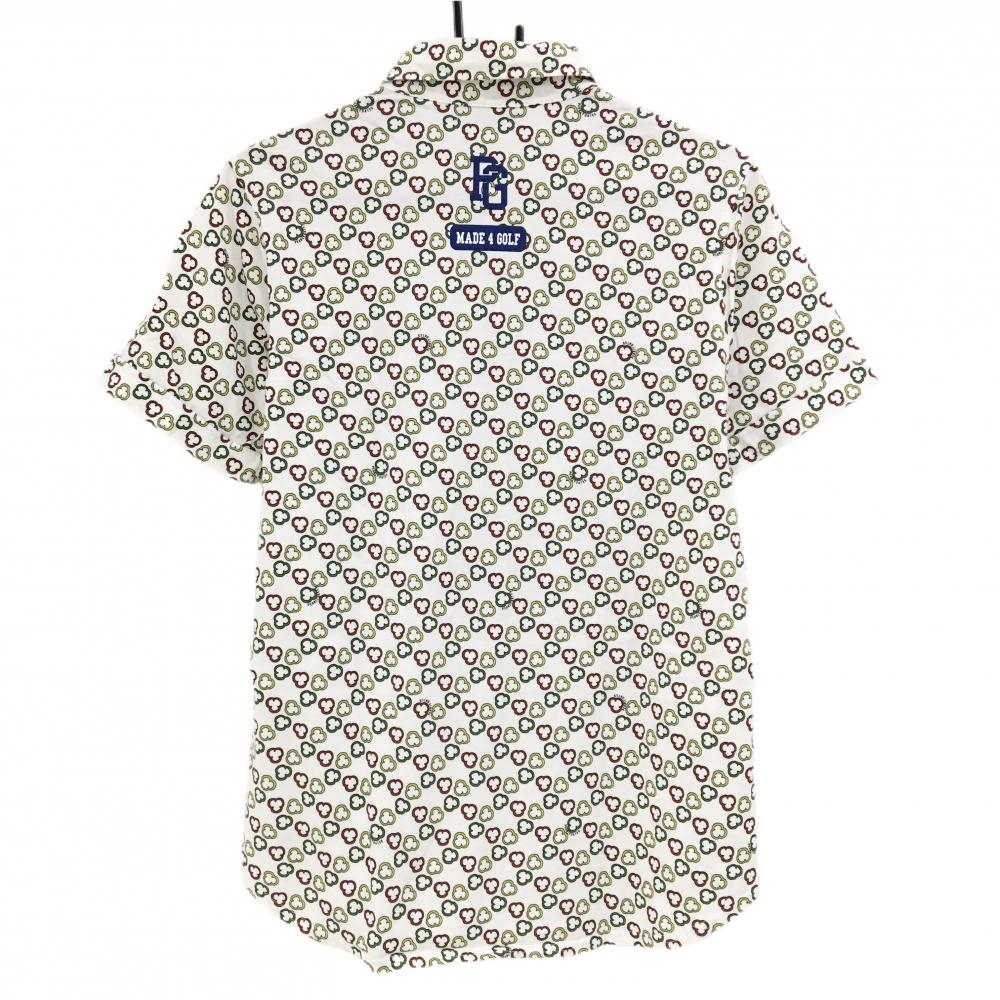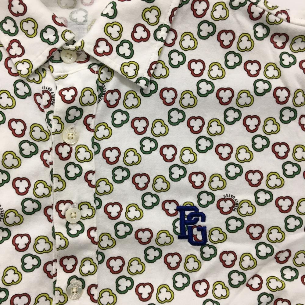 【超美品】パーリーゲイツ 半袖ポロシャツ 白×マルチカラー 総柄 ロゴ刺しゅう メンズ 4(M) ゴルフウェア PEARLY GATES