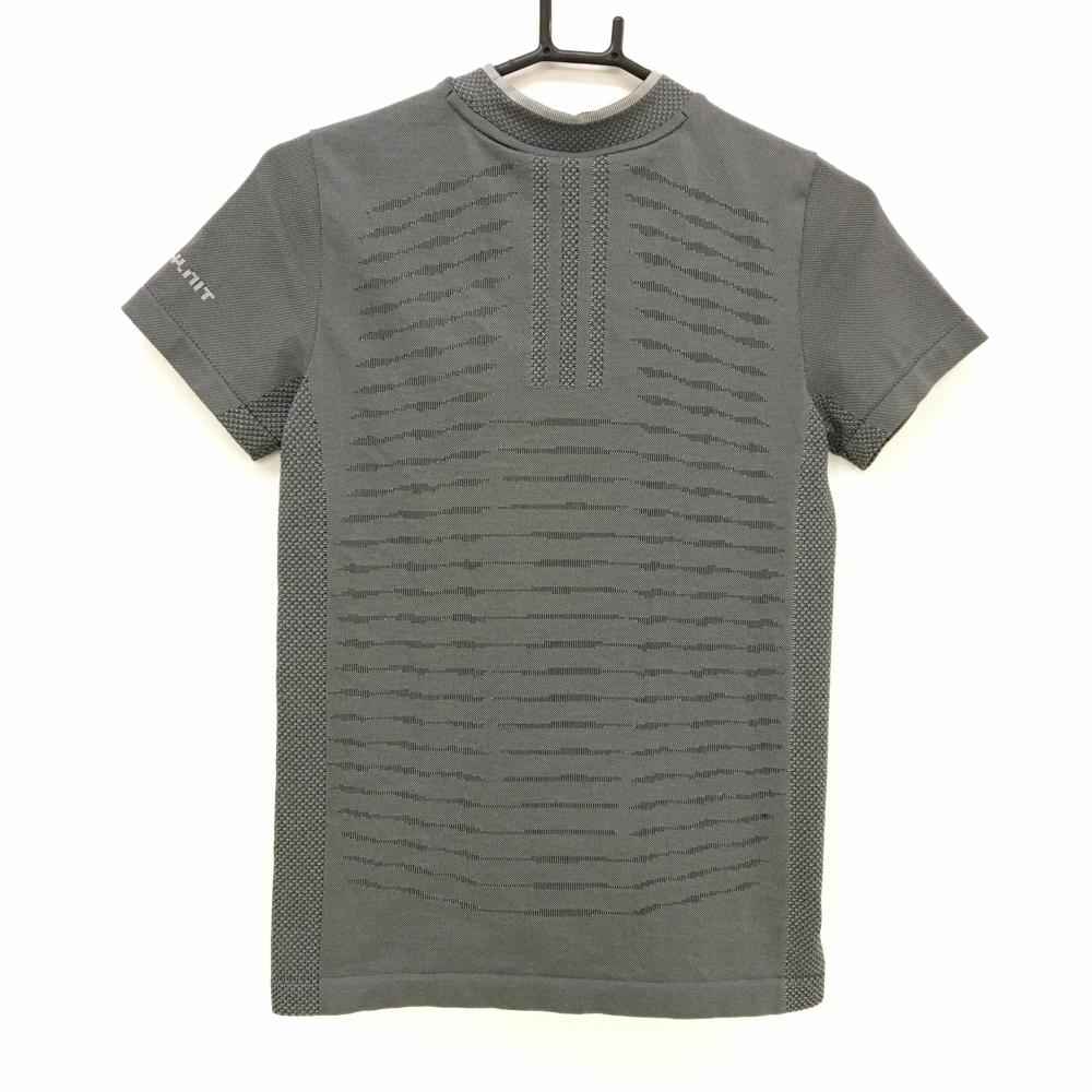 【美品】アディダス 半袖ハイネックシャツ ダークグレー×白 3ライン レディース M ゴルフウェア 2023年モデル adidas