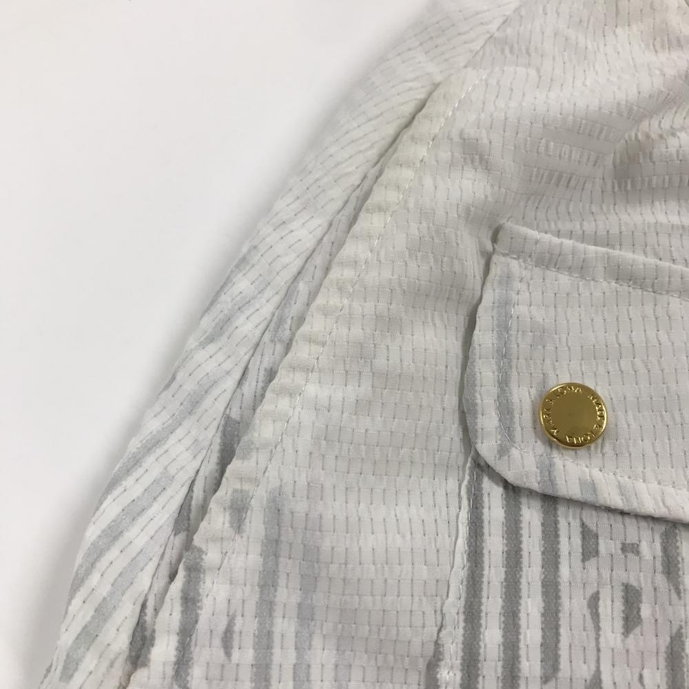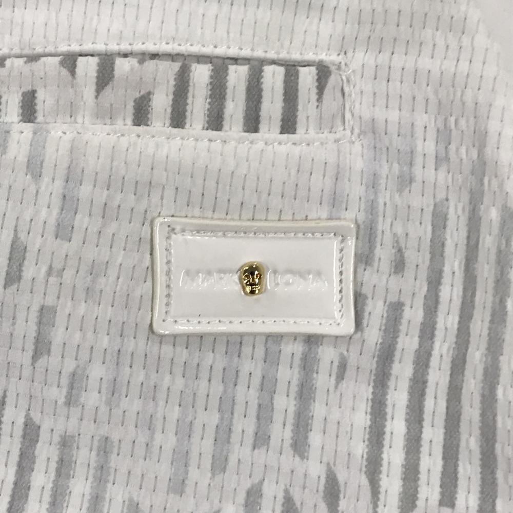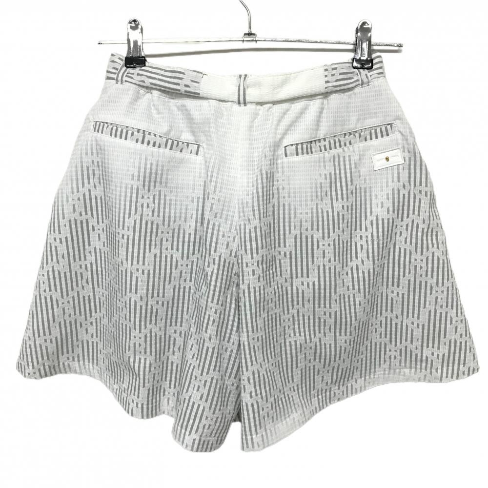 【美品】マークアンドロナ キュロットスカート 白×グレー ストライプ 裏地メッシュ 共布ベルト付 レディース M ゴルフウェア MARK&LONA