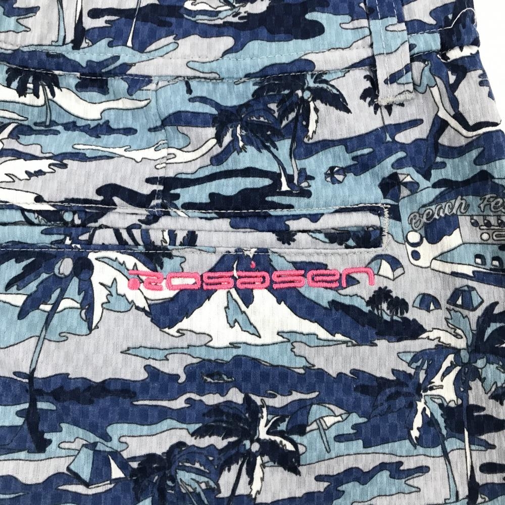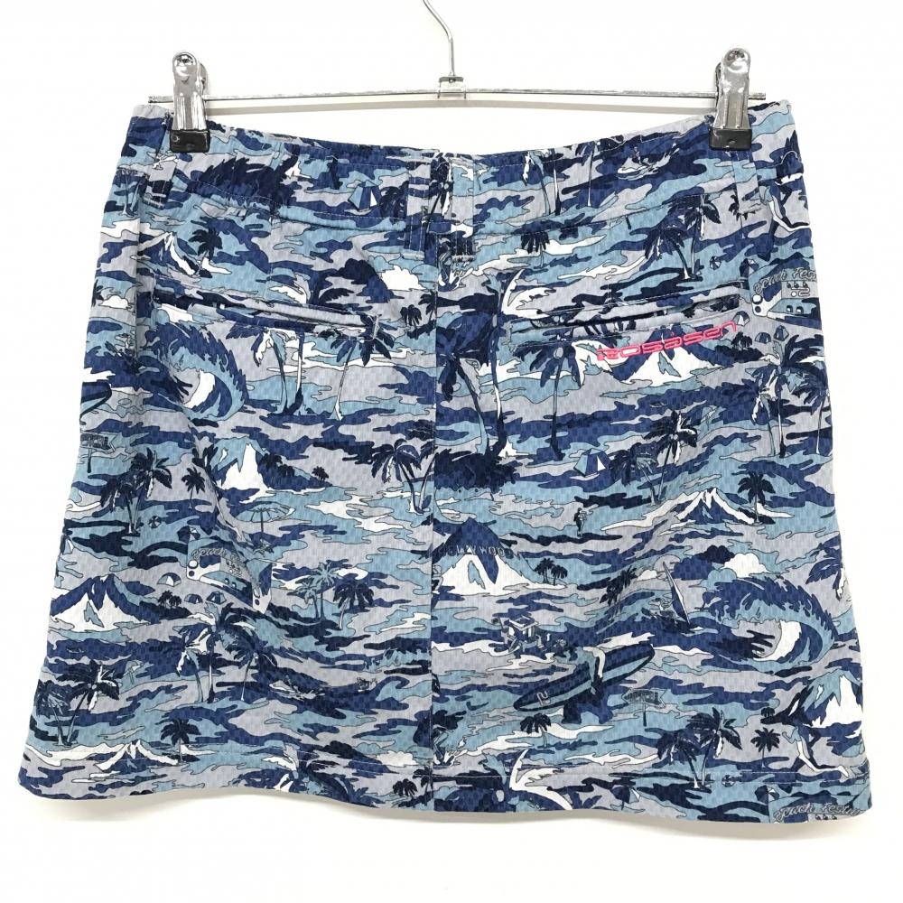 ロサーセン スカート ネイビー×ライトブルー×ライトグレー 総柄 カモフラ調 ヤシの木 波 レディース L ゴルフウェア Rosasen