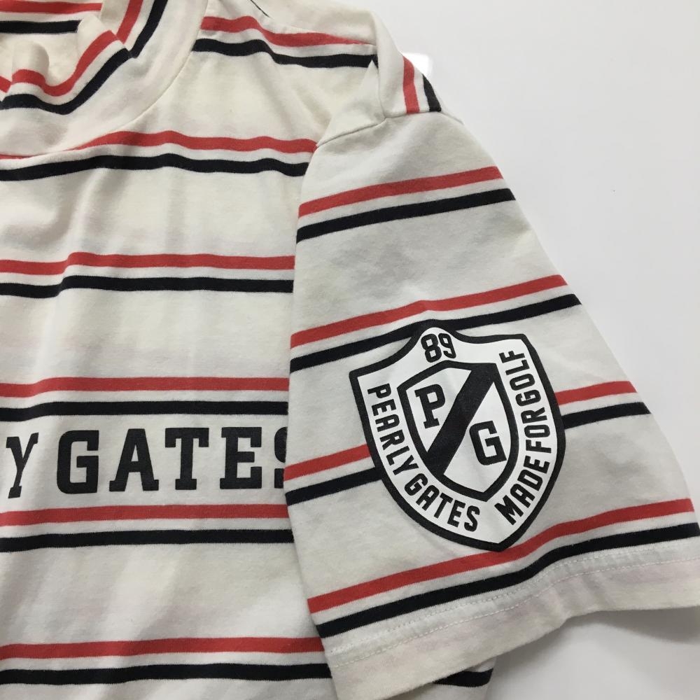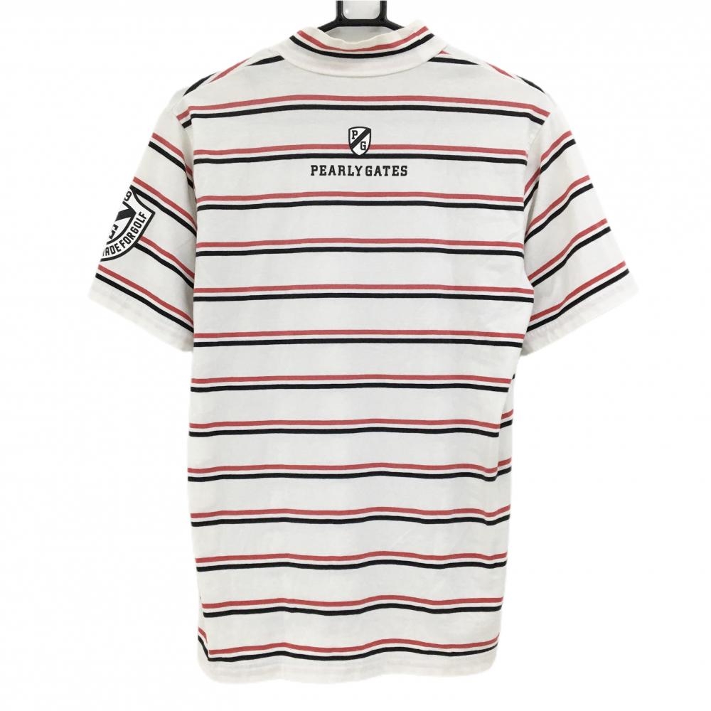 パーリーゲイツ 半袖ハイネックシャツ 白×レッド×黒 ボーダー メンズ 6(XL) ゴルフウェア PEARLY GATES