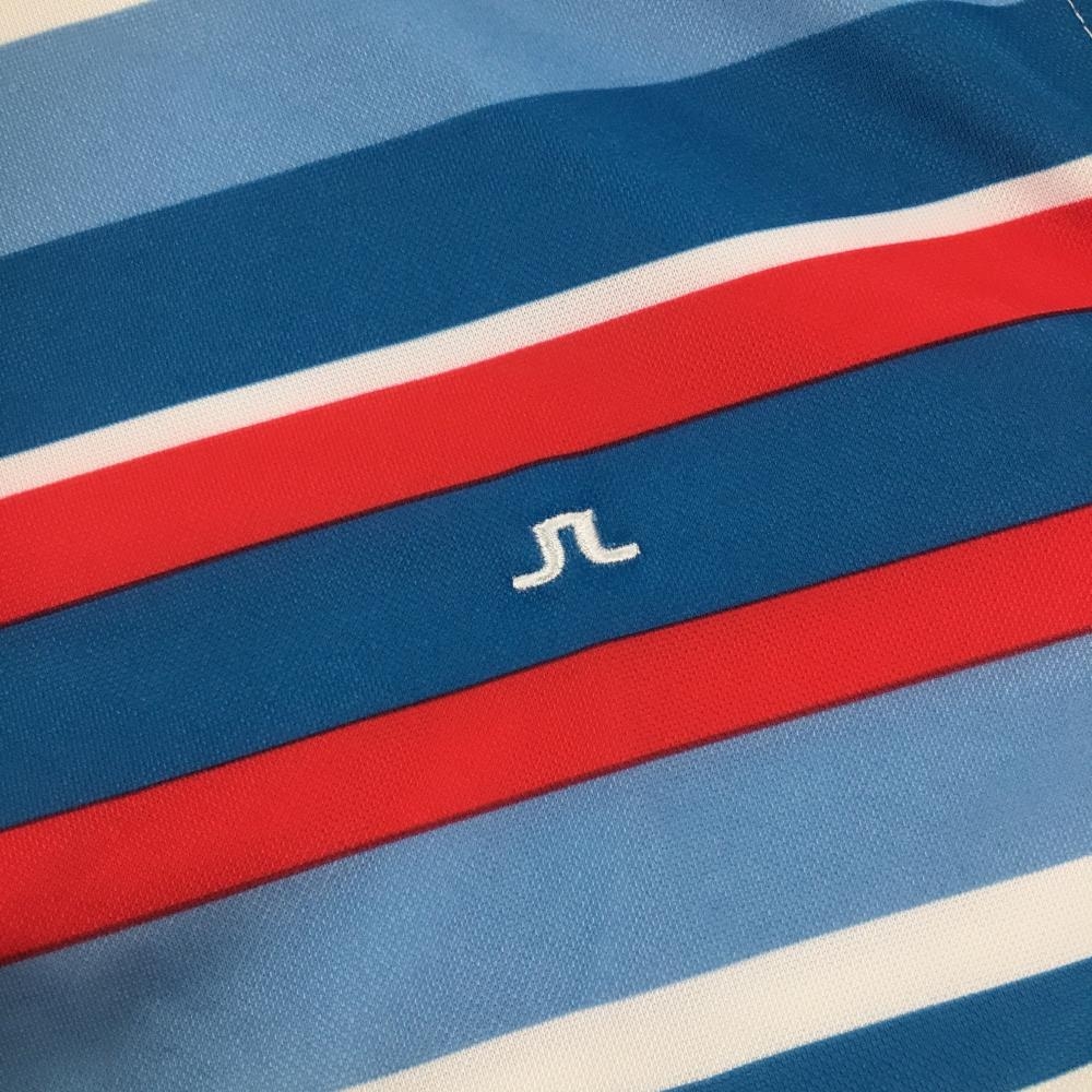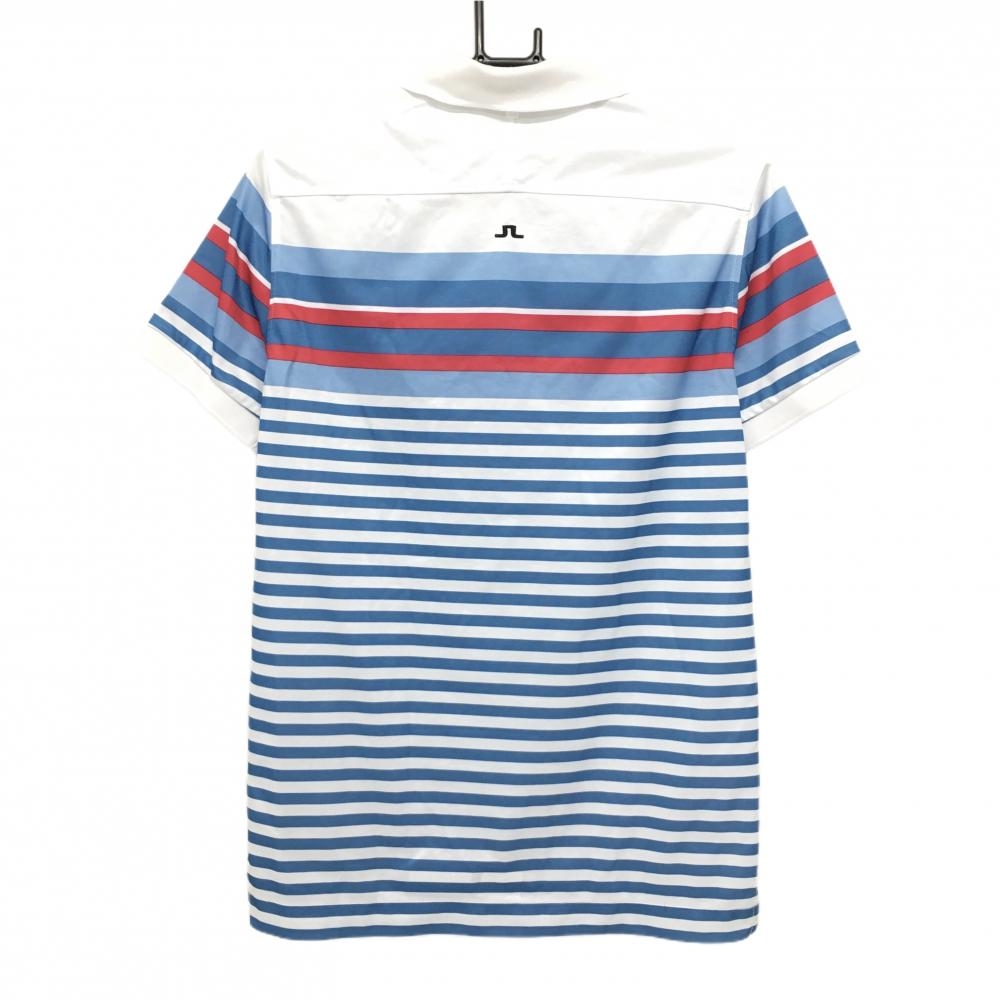 【美品】ジェイリンドバーグ 半袖ポロシャツ 白×ブルー ボーダー メンズ XS ゴルフウェア J.LINDEBERG