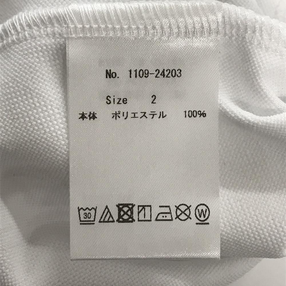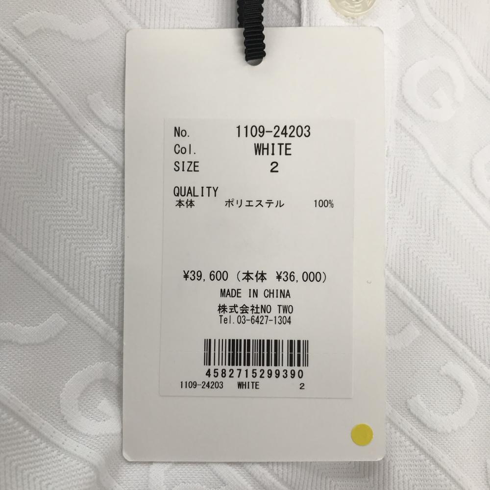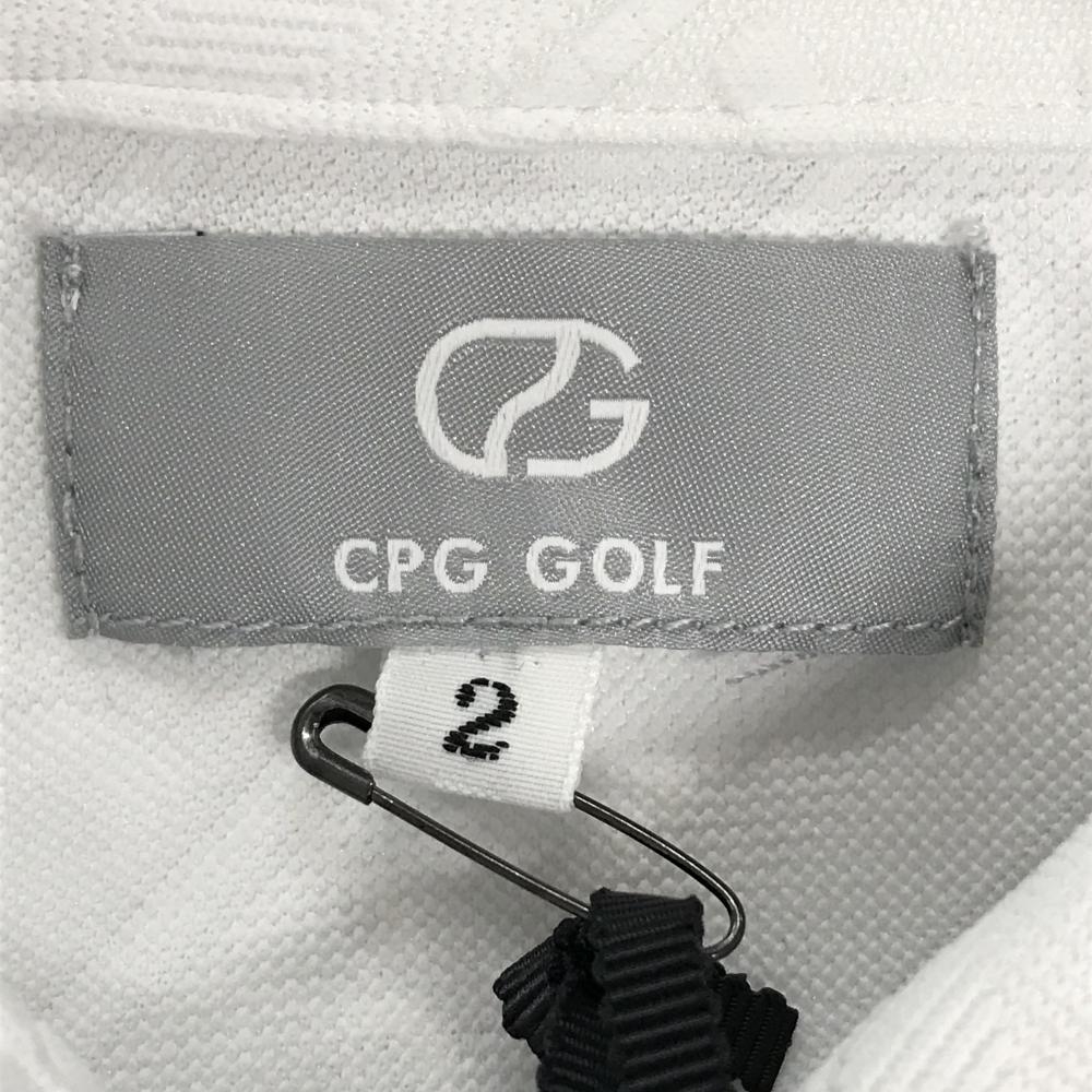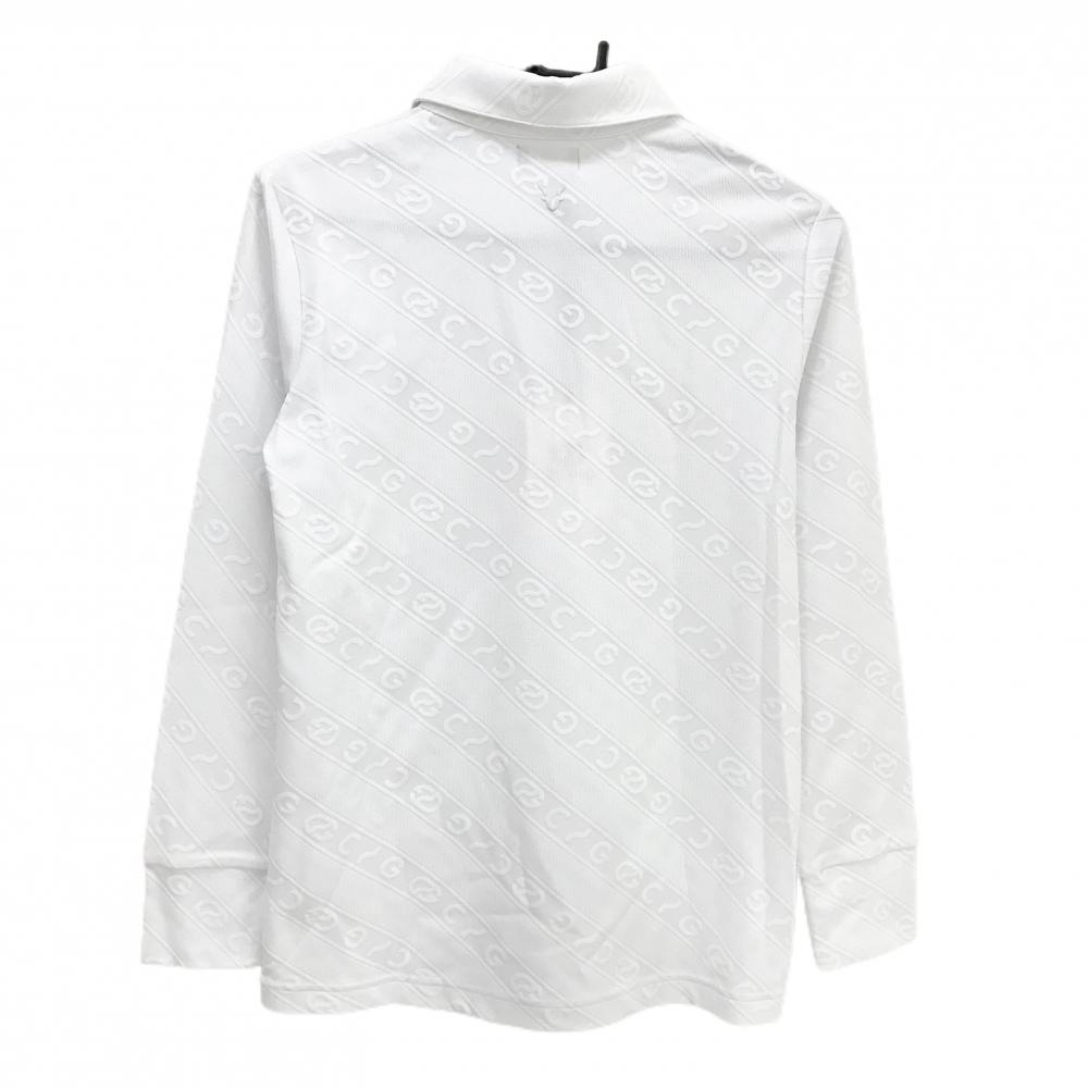【新品】CPG 長袖ポロシャツ 白 ロゴ地模様 斜めストライプ調 ヒツジワッペン 蝶ネクタイ着脱可 レディース 2(M) ゴルフウェア CPG