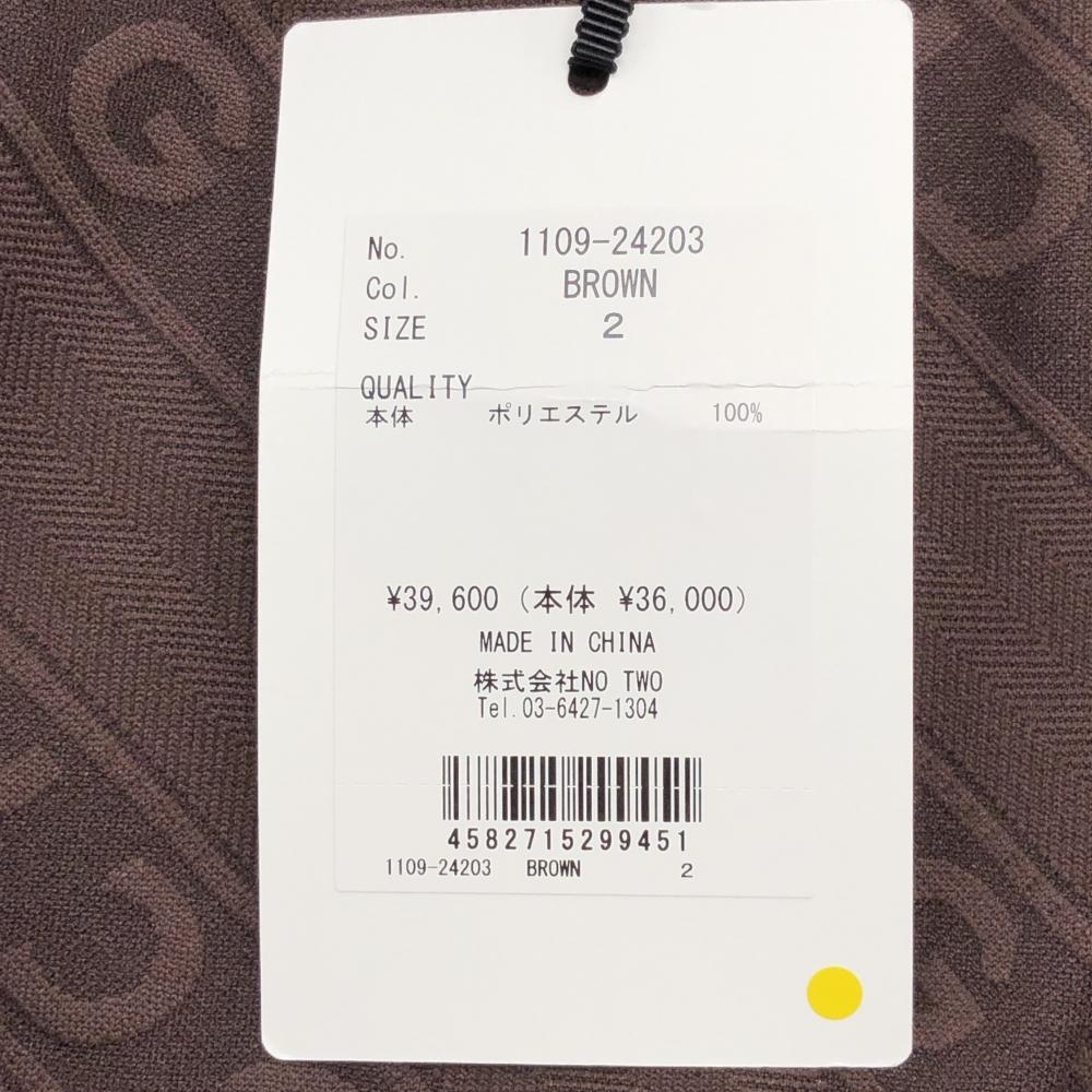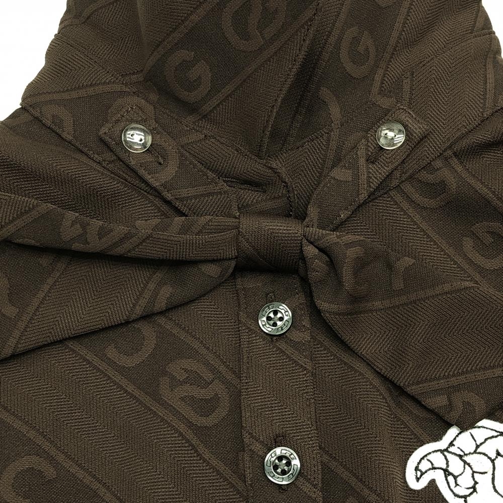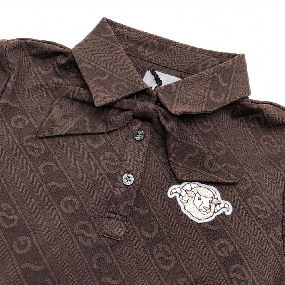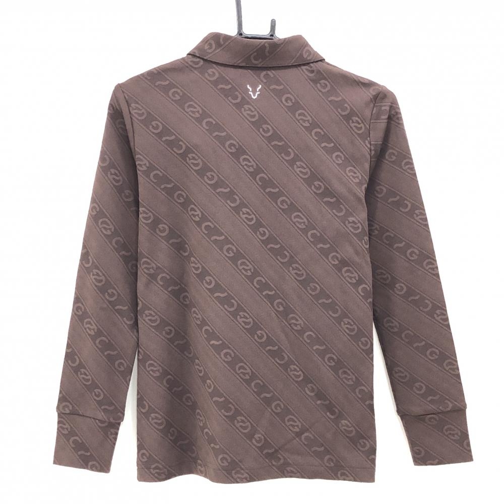 【新品】CPG 長袖ポロシャツ ブラウン ロゴ地模様 斜めストライプ調 ヒツジワッペン 蝶ネクタイ着脱可 レディース 2(M) ゴルフウェア CPG