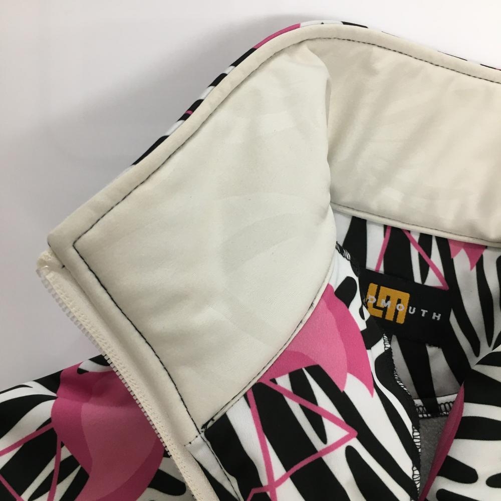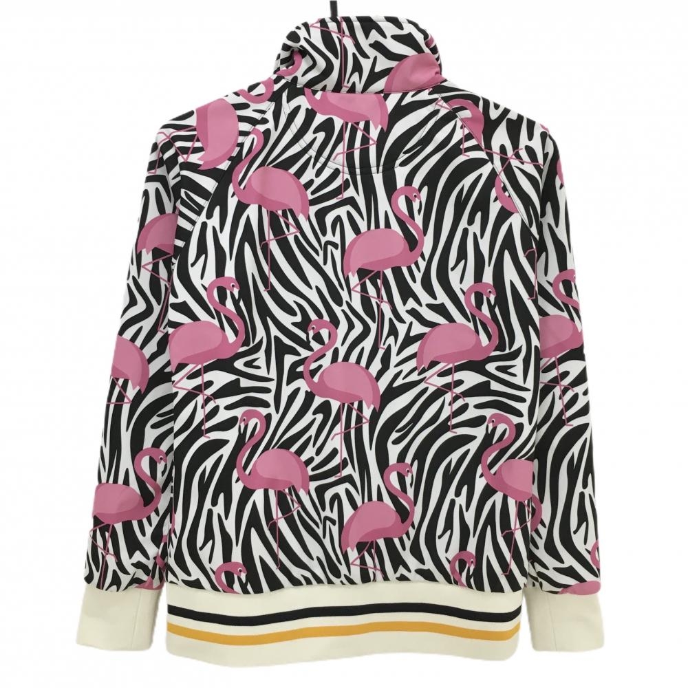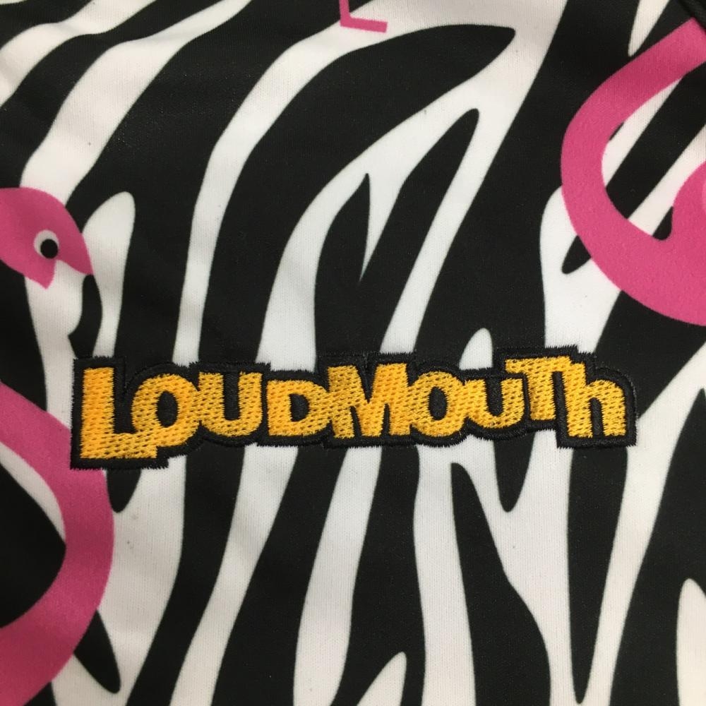 【美品】ラウドマウス ジャケットブルゾン 白×黒×ピンク サベージフラミンゴ ゼブラ 裏起毛 レディース M ゴルフウェア LOUDMOUTH