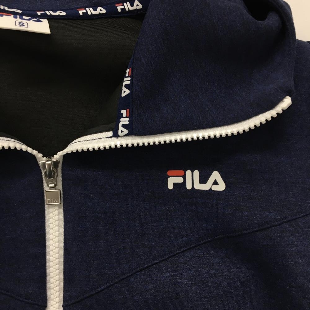 【美品】フィラ ジップパーカー ネイビー×白 ブルゾン 袖ロゴ レディース S ゴルフウェア FILA GOLF