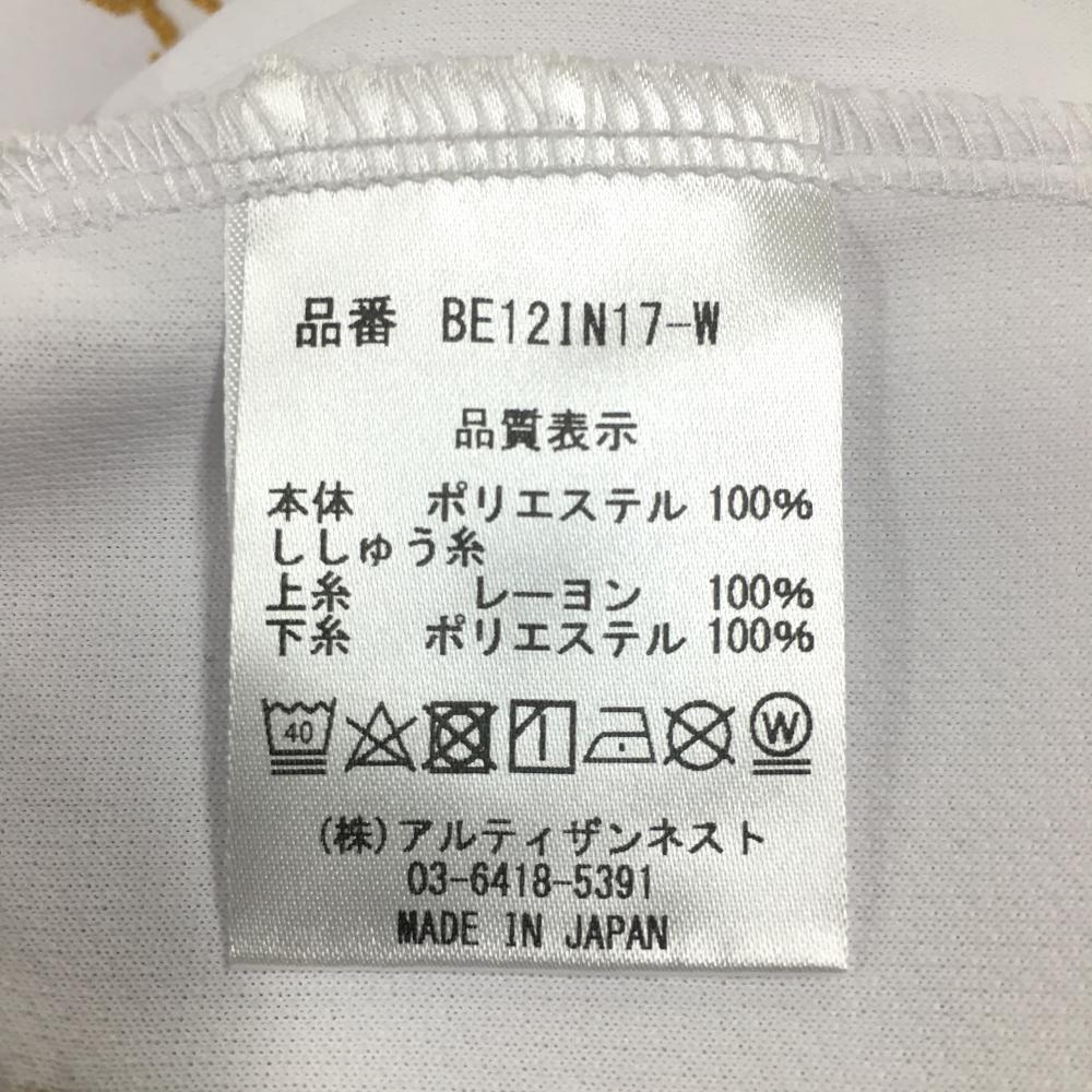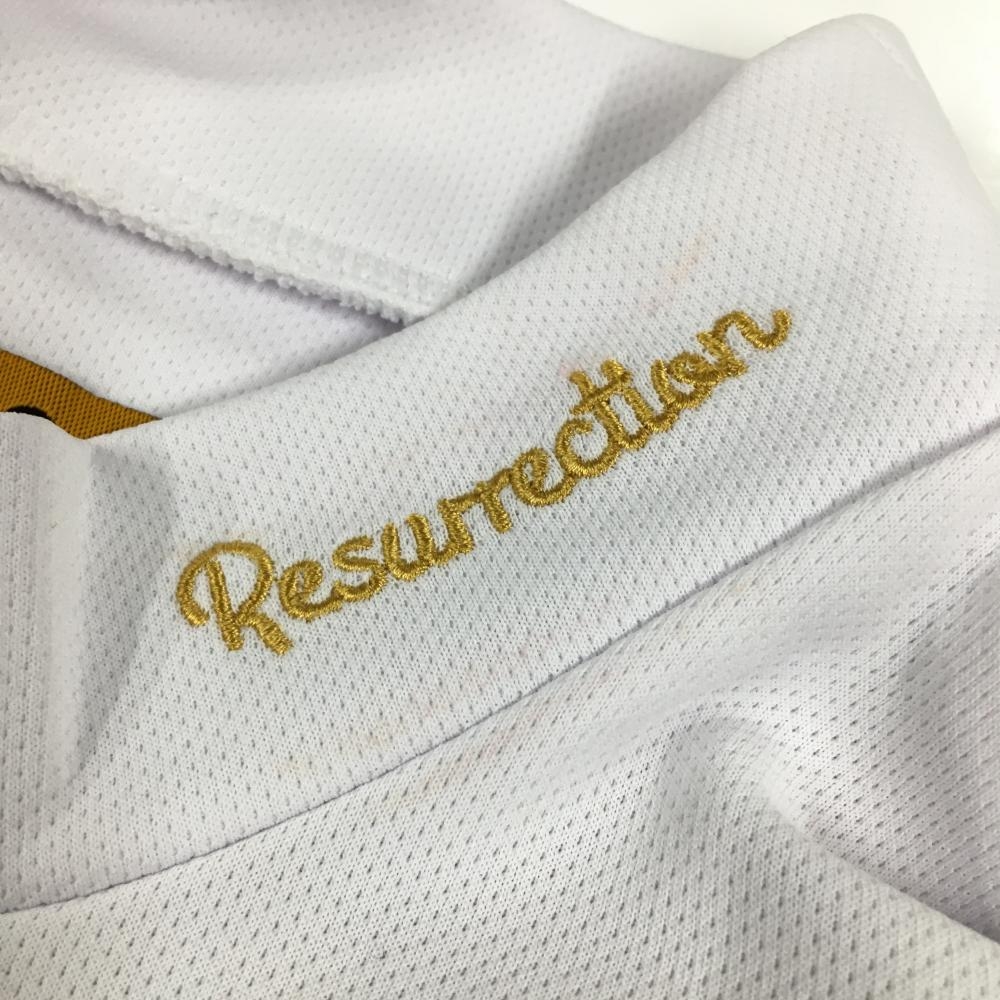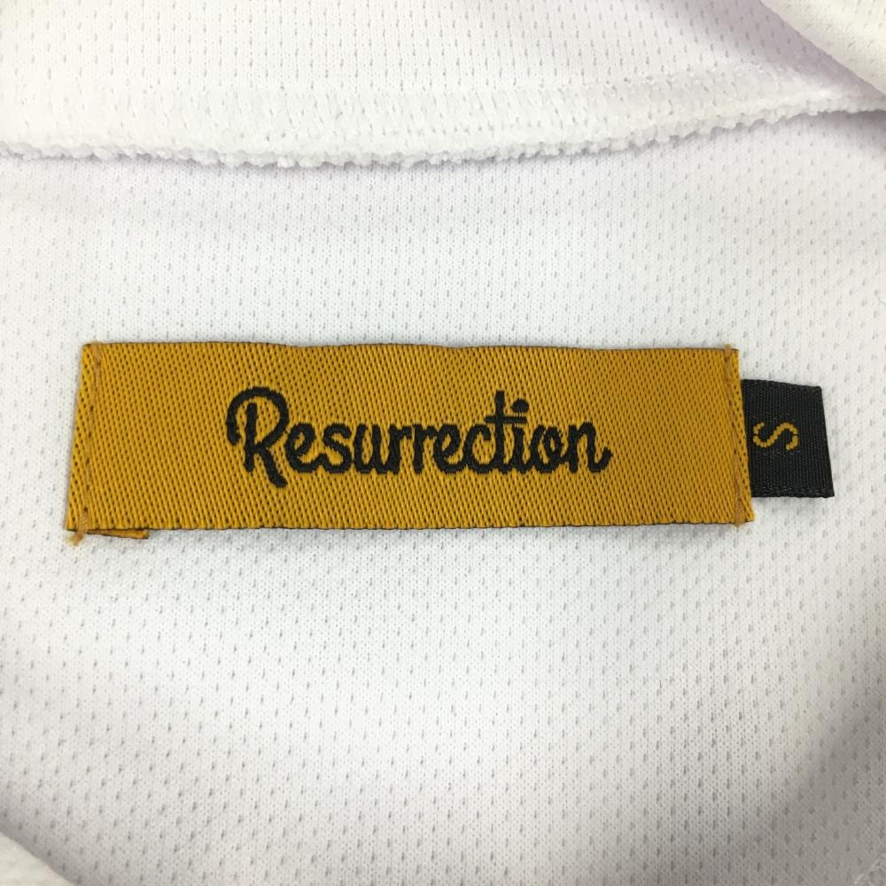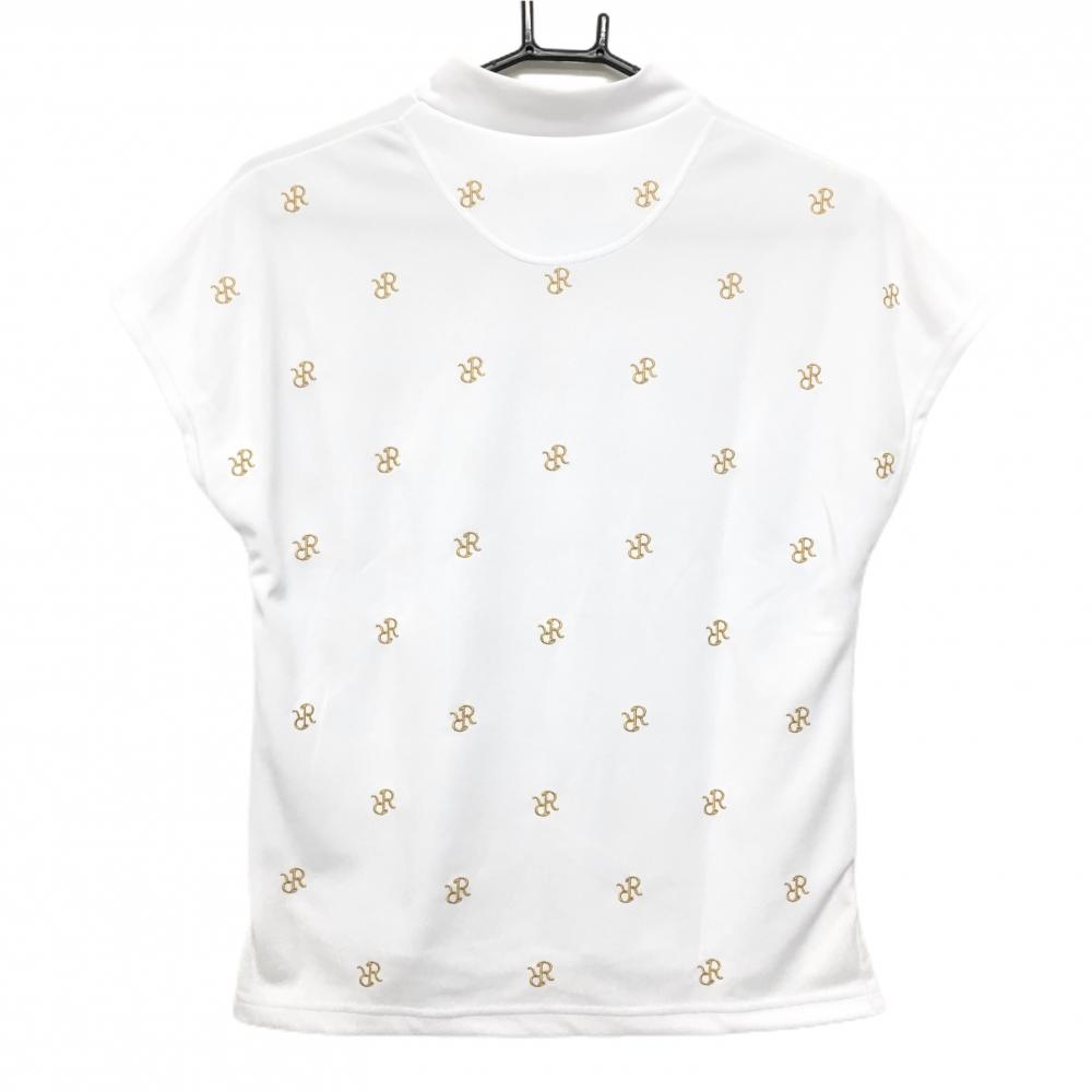 レザレクション 半袖ハイネックシャツ 白×イエローブラウン ロゴ刺しゅう総柄 フレンチスリーブ ネック汚れ レディース ゴルフウェア Resurrection