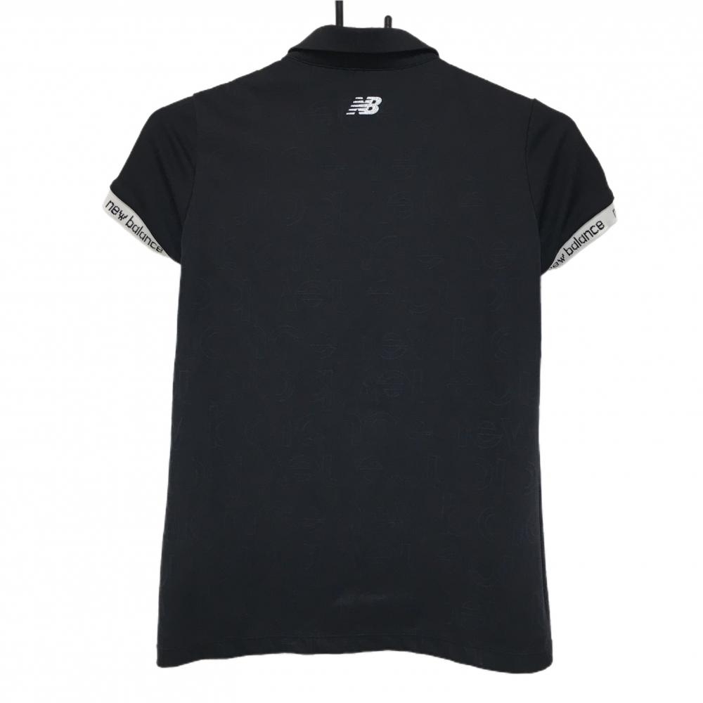 【美品】ニューバランスゴルフ 半袖ポロシャツ 黒×白 ロゴ地模様 レディース 0(S) ゴルフウェア New Balance