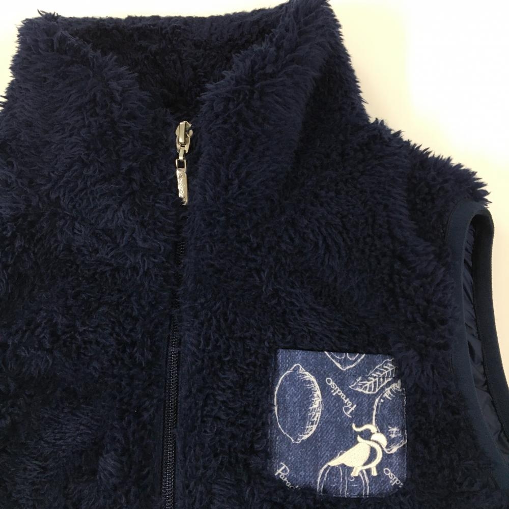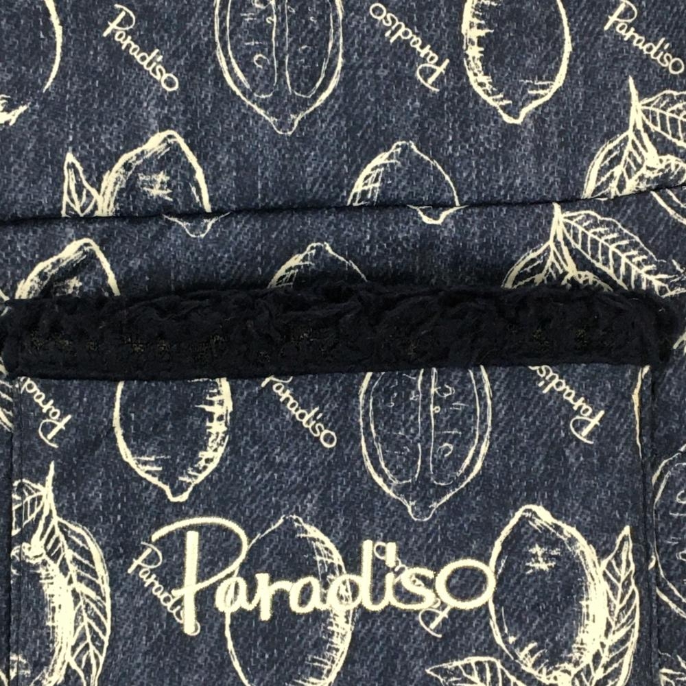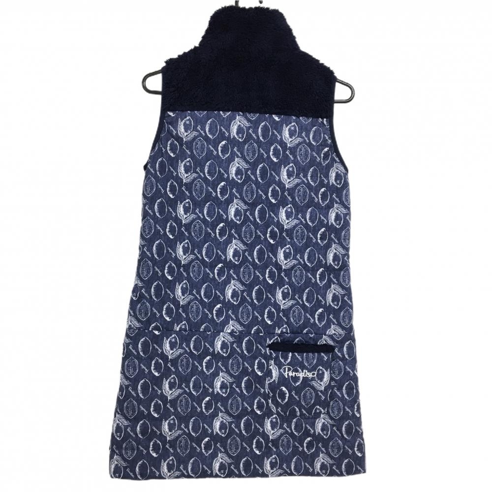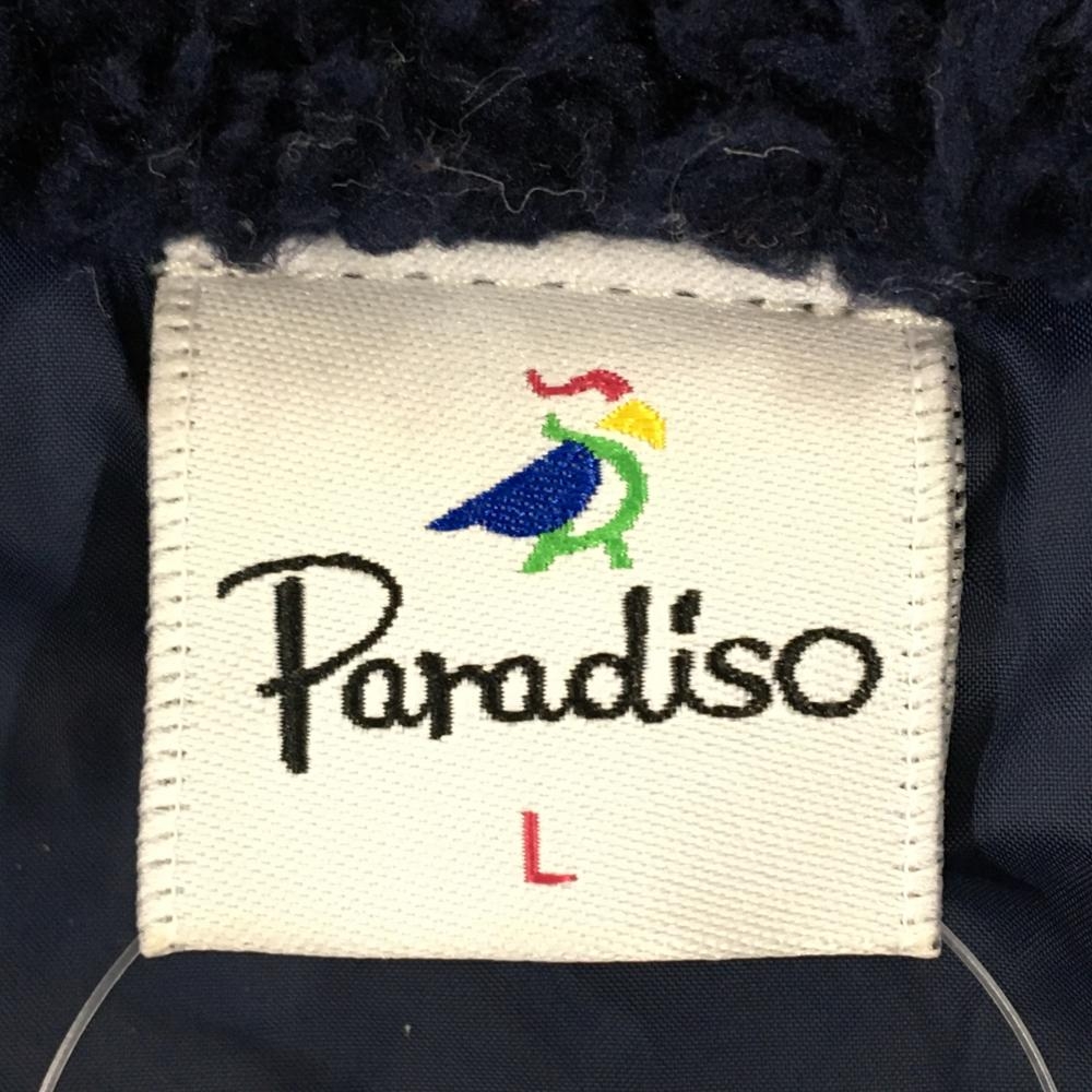 【美品】パラディーゾ 中綿ノースリーブワンピース ネイビー×白 果実柄 ボア切替 レディース L ゴルフウェア Paradiso