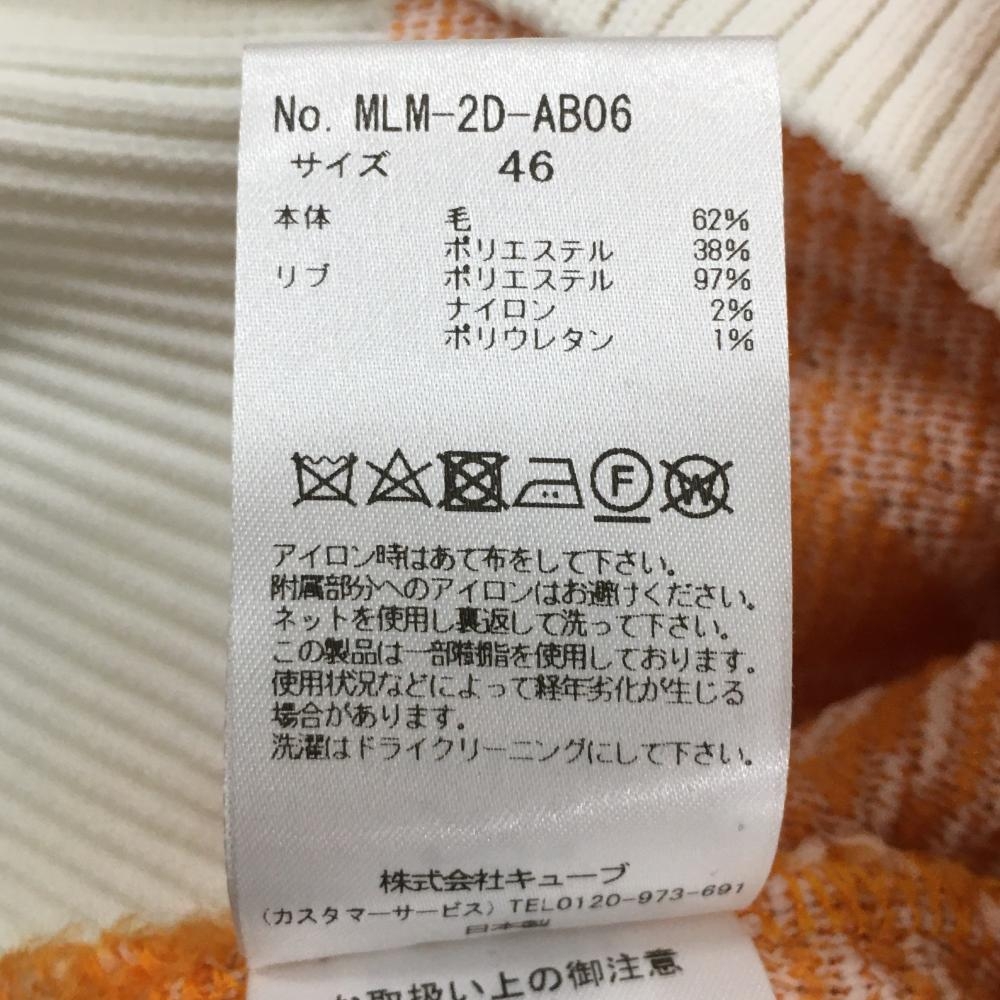 【美品】マークアンドロナ セーター オレンジ×白 スカル総柄編み ニット ウール混 リブ伸び少 メンズ 46 ゴルフウェア MARK&LONA