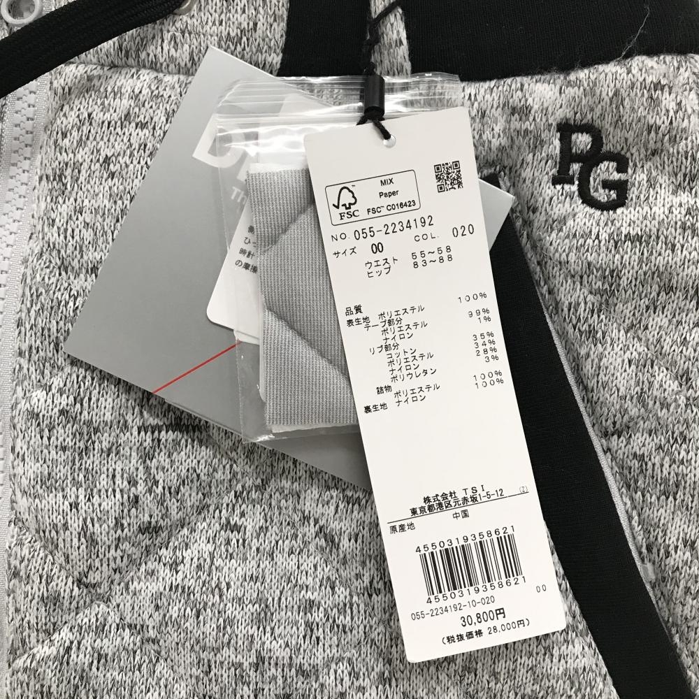 【新品】パーリーゲイツ 中綿スカート 杢グレー×黒 キルティング サイドロゴ ウエストゴム レディース 00(XS) ゴルフウェア PEARLY GATES