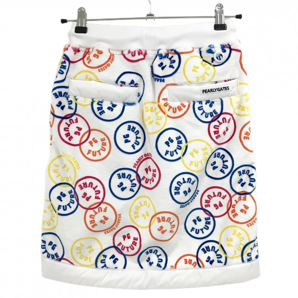 【新品】パーリーゲイツ ベロアスカート 白×マルチカラー FUTUREニコ 裏ボア ウエストゴム レディース 0(S) ゴルフウェア PEARLY GATES