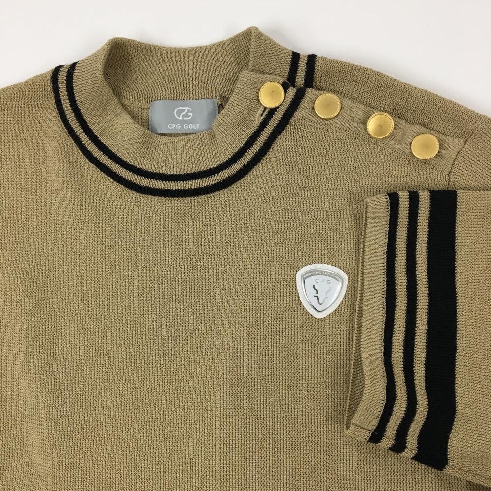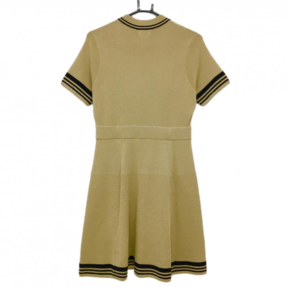 【新品】CPG 半袖ニットワンピース ベージュ×黒 肩ボタン 立体ロゴ レディース 3(L) ゴルフウェア 2024年モデル CPG