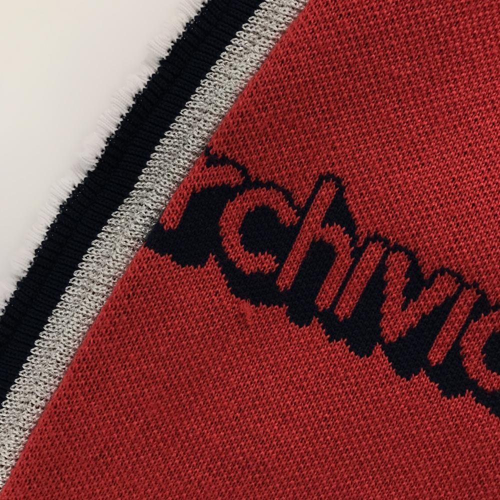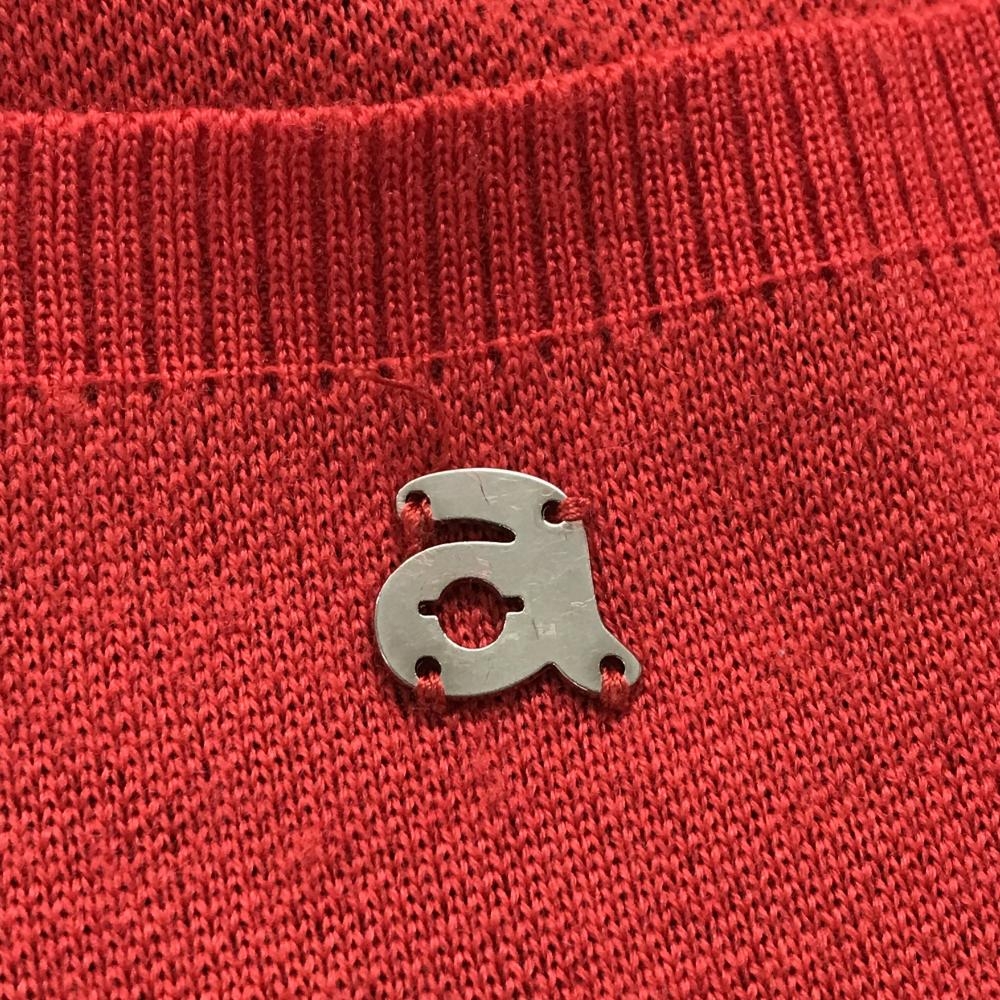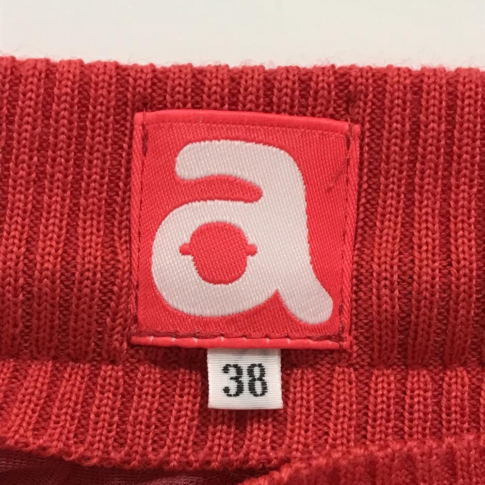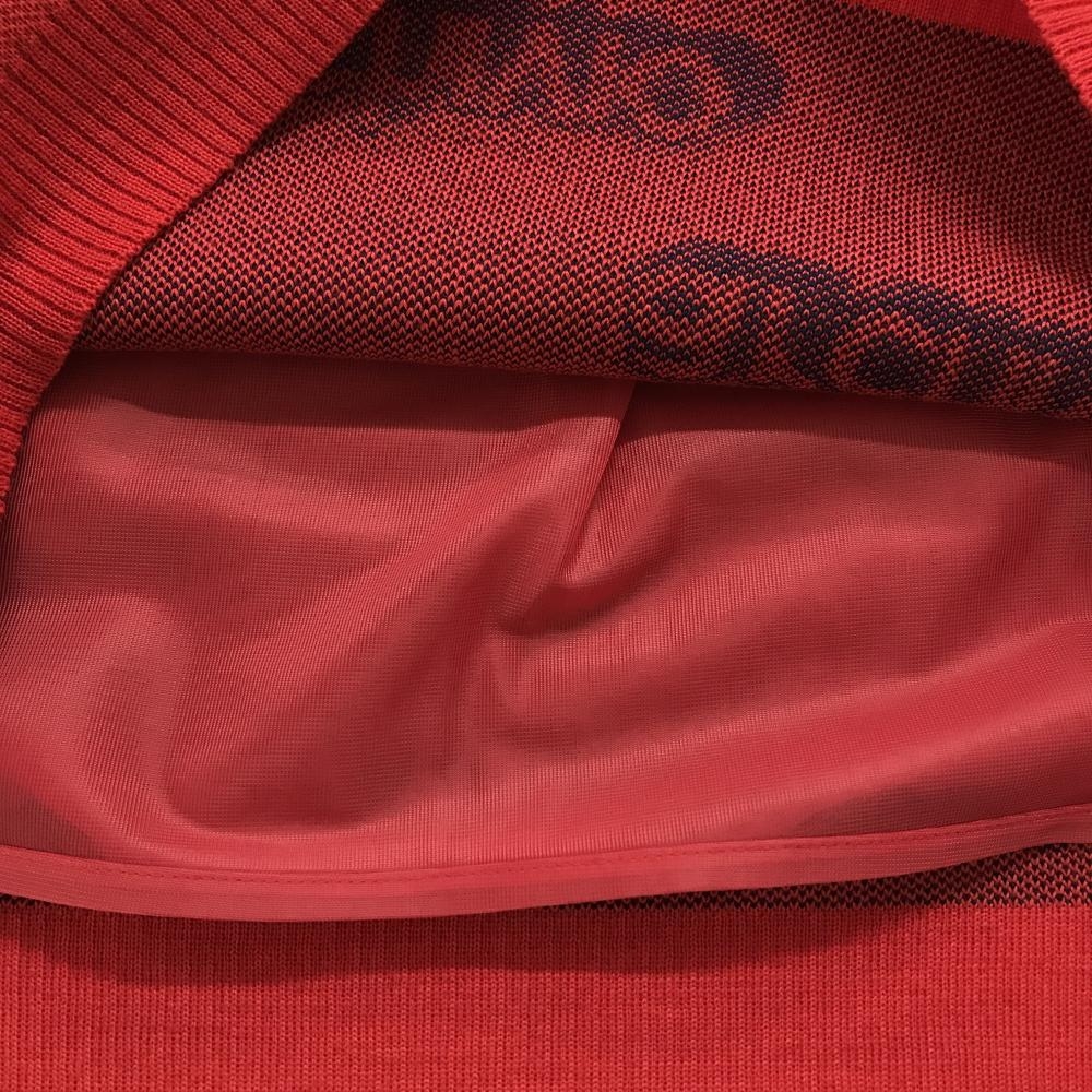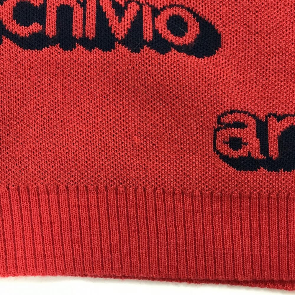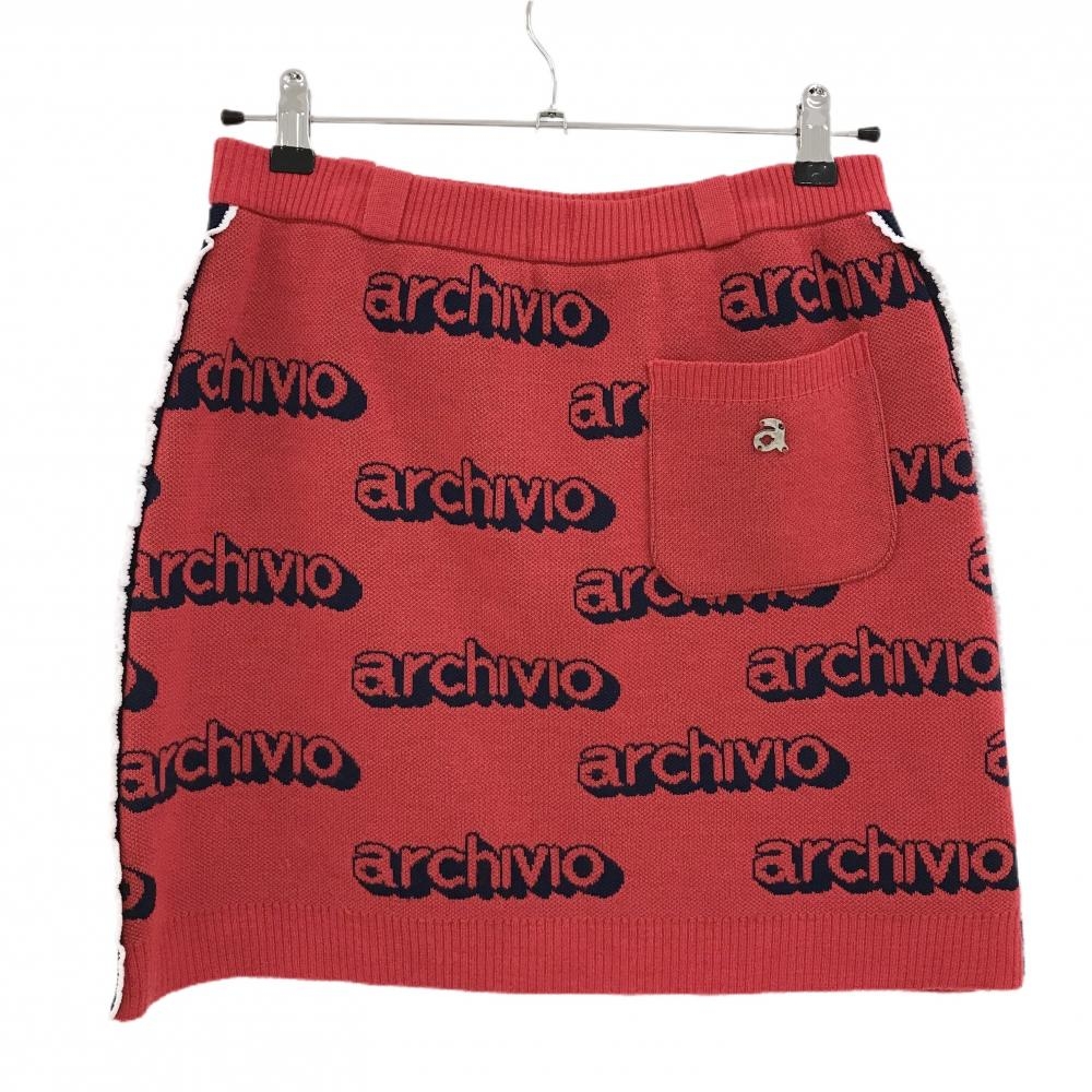 【超美品】アルチビオ ニットスカート レッド×ネイビー ロゴ総柄 サイドライン レディース 38(M) ゴルフウェア archivio