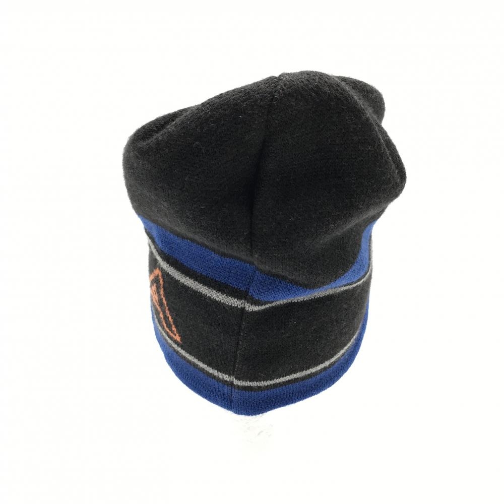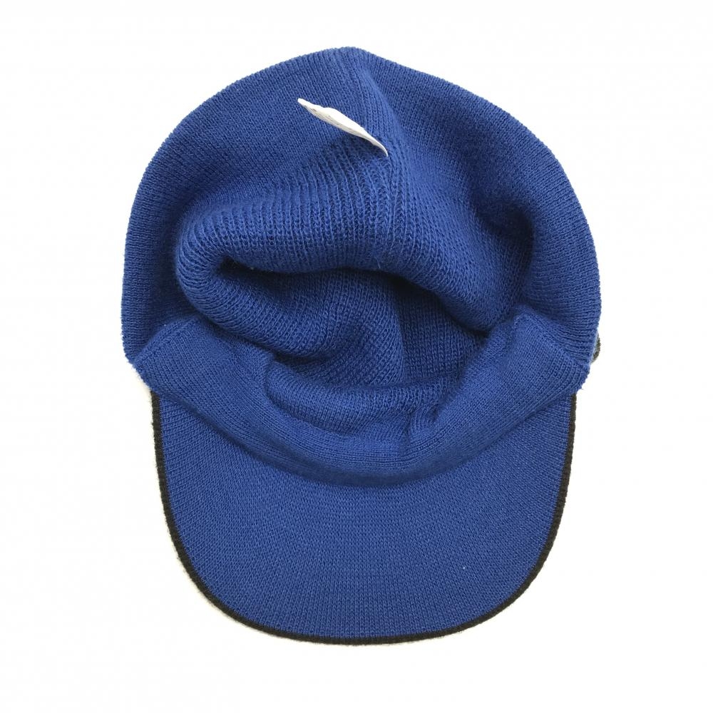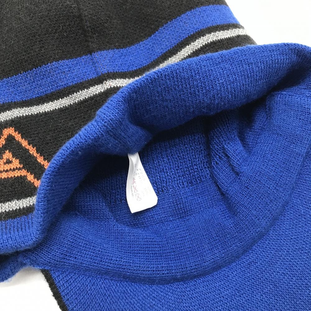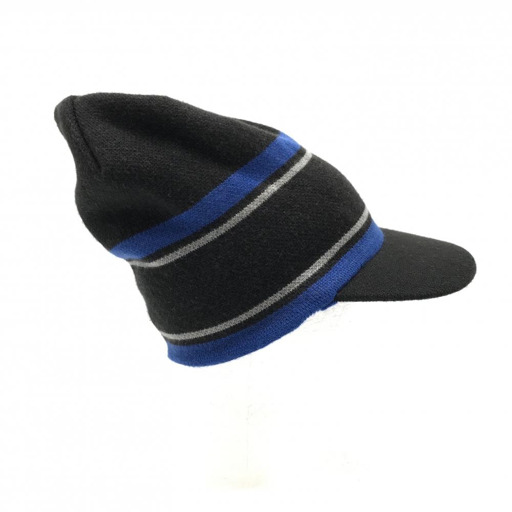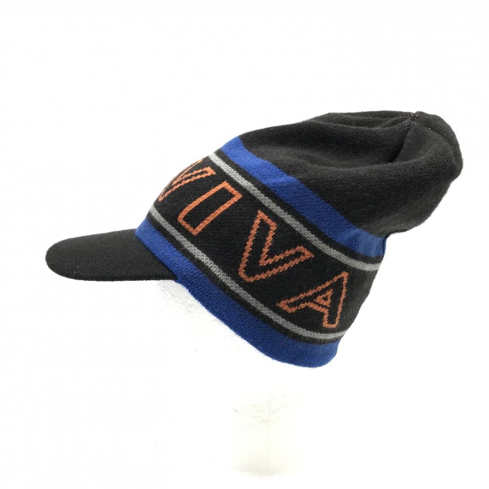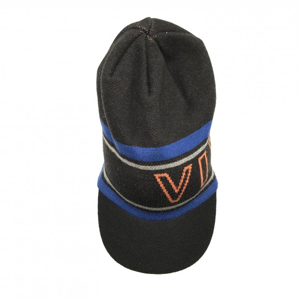 【美品】ビバハート つば付きニット帽 黒×ブルー ライン ロゴ 50 ゴルフウェア VIVA HEART
