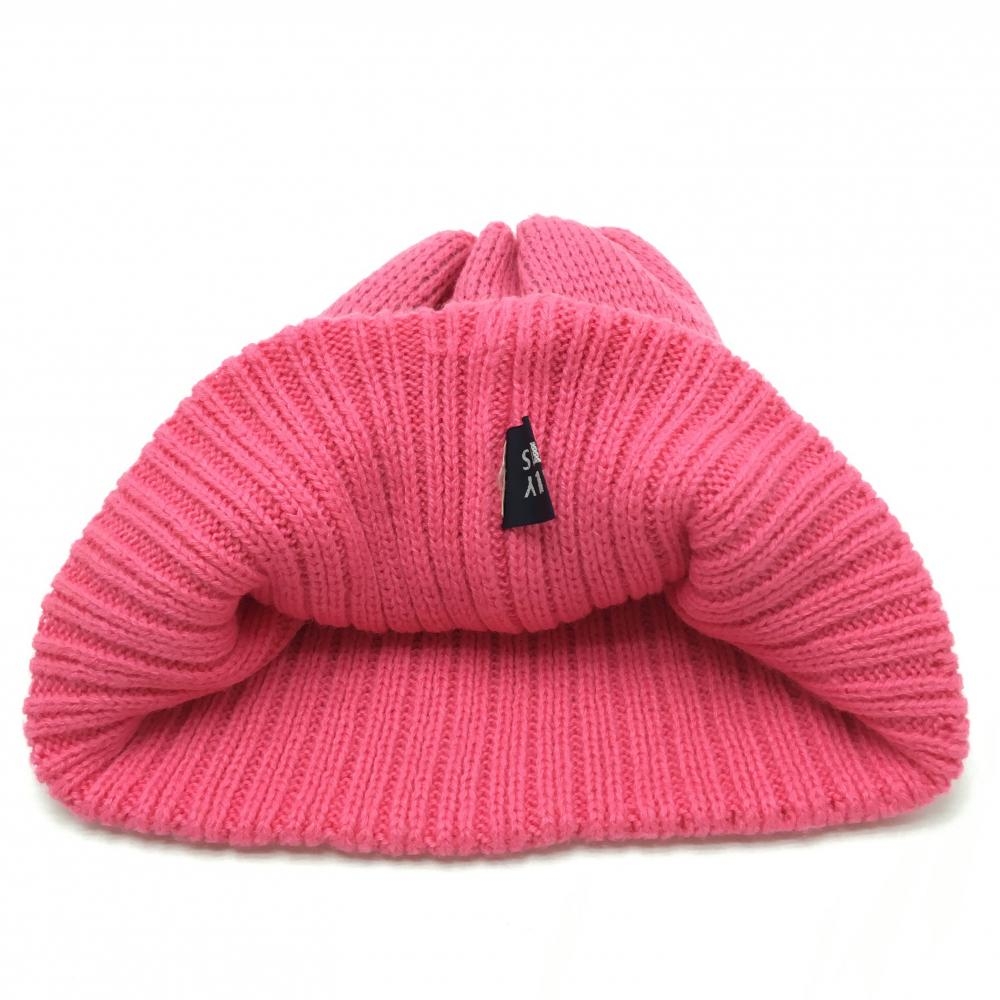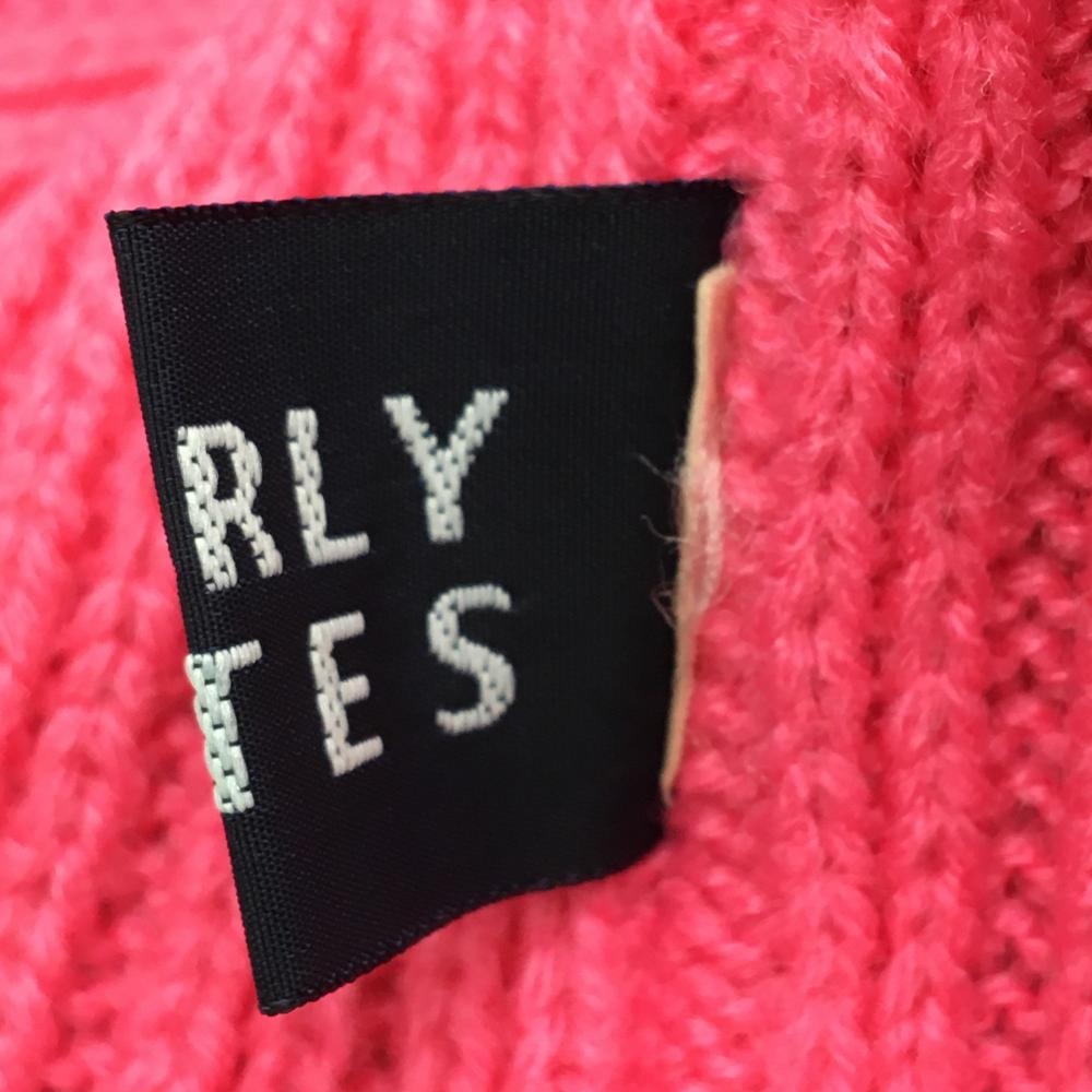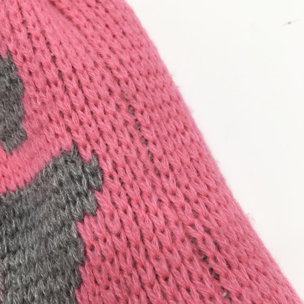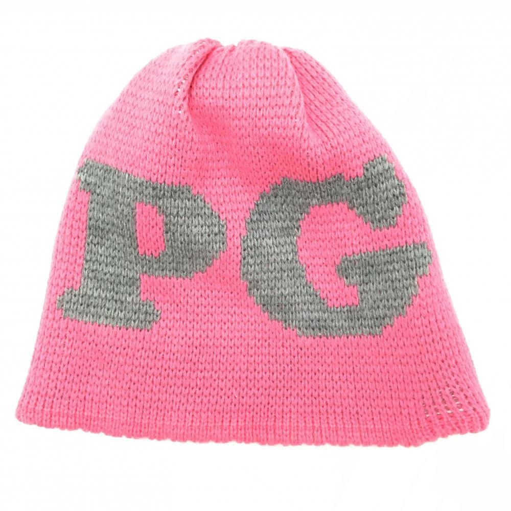 【美品】パーリーゲイツ ニット帽 ピンク×グレー ロゴ スカルラビット ゴルフウェア PEARLY GATES