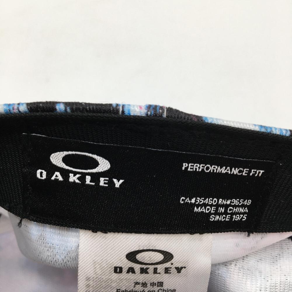 【超美品】オークリー キャップ 白×黒 総柄 立体ロゴ刺しゅう 58cm(ONE SIZE) ゴルフウェア Oakley