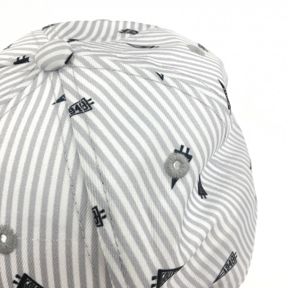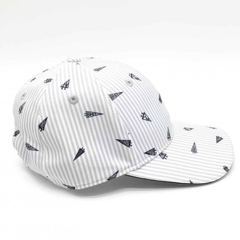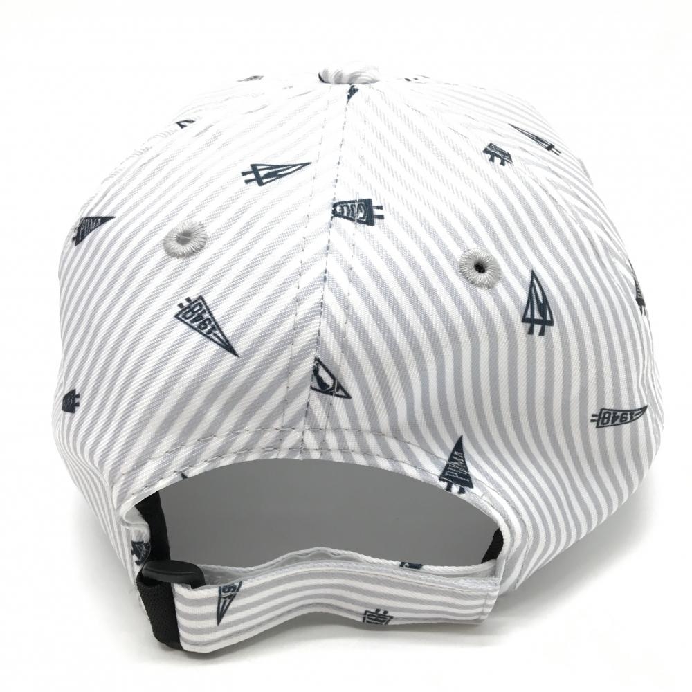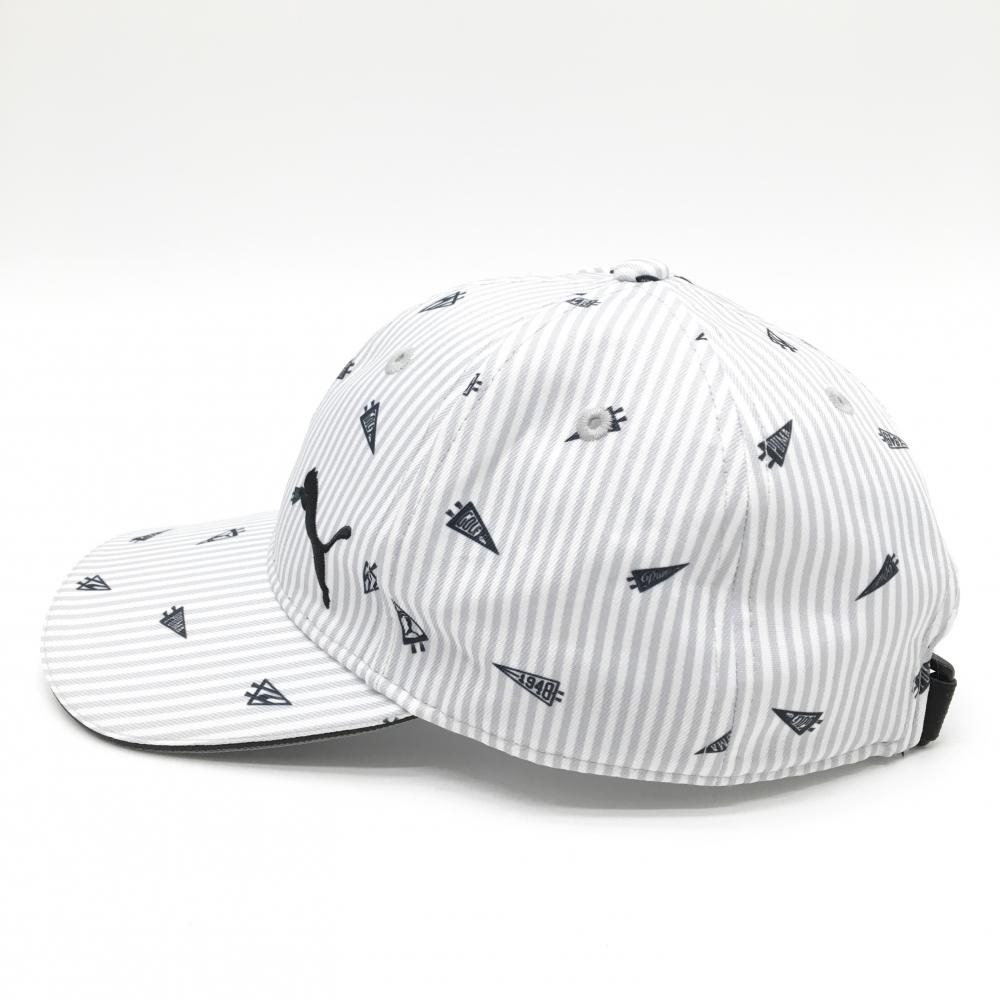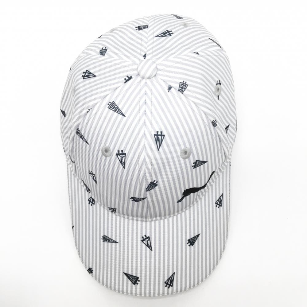 【超美品】プーマ キャップ グレー×白 ペナント柄 ストライプ ロゴ刺しゅう One Size Fits All(56-59cm) ゴルフウェア PUMA