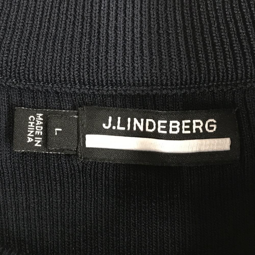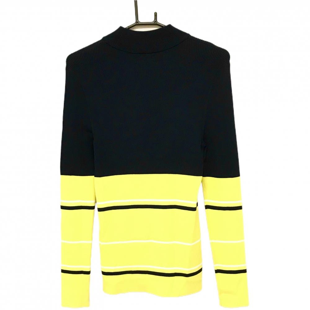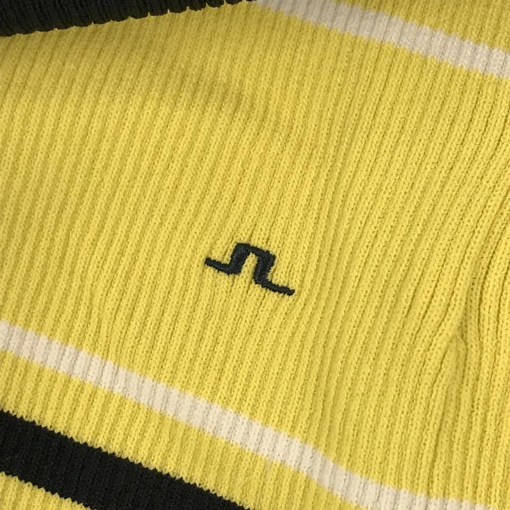 【超美品】ジェイリンドバーグ ハイネックセーター ネイビー×イエロー 一部ボーダー ニット レディース L ゴルフウェア J.LINDEBERG