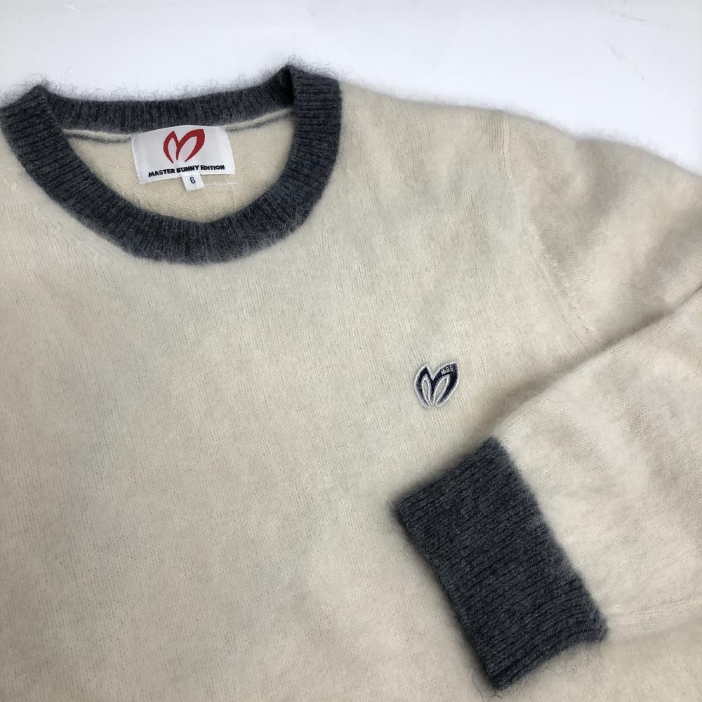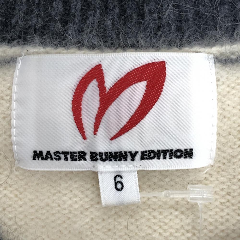 【美品】マスターバニー セーター 白×グレー ウール混 メンズ 6(XL) ゴルフウェア MASTER BUNNY EDITION