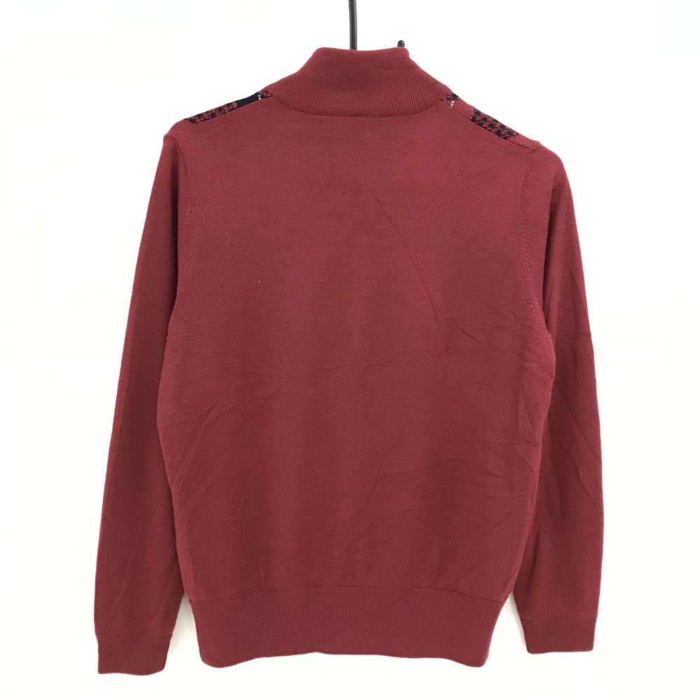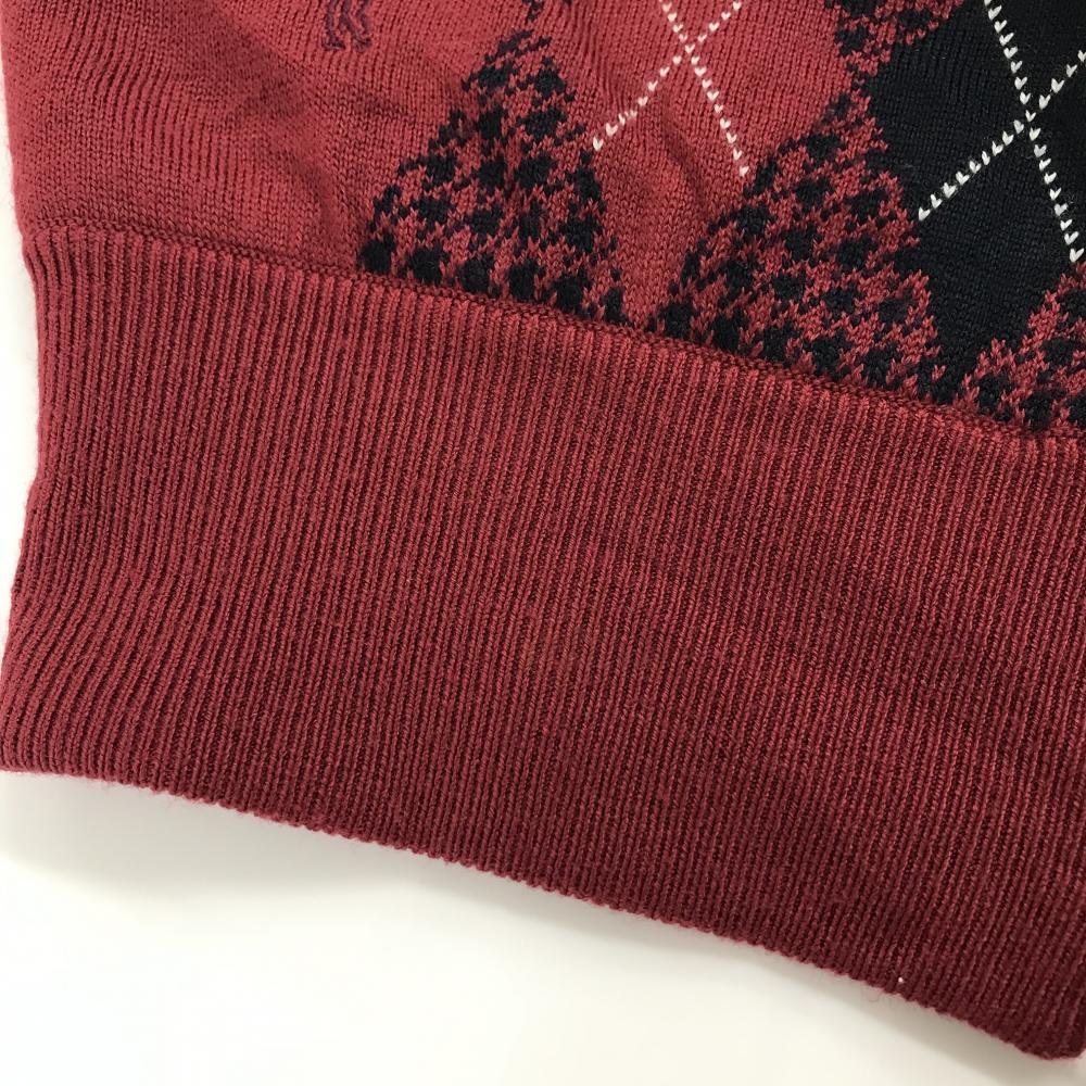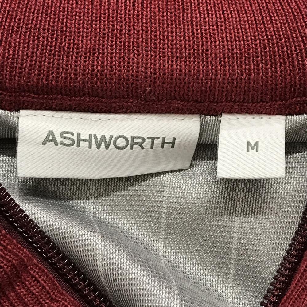 【美品】アシュワース ニットジャケット レッド×黒 前面ダイヤ柄 ブルゾン 千鳥格子 ウール混 レディース M ゴルフウェア ASHWORTH