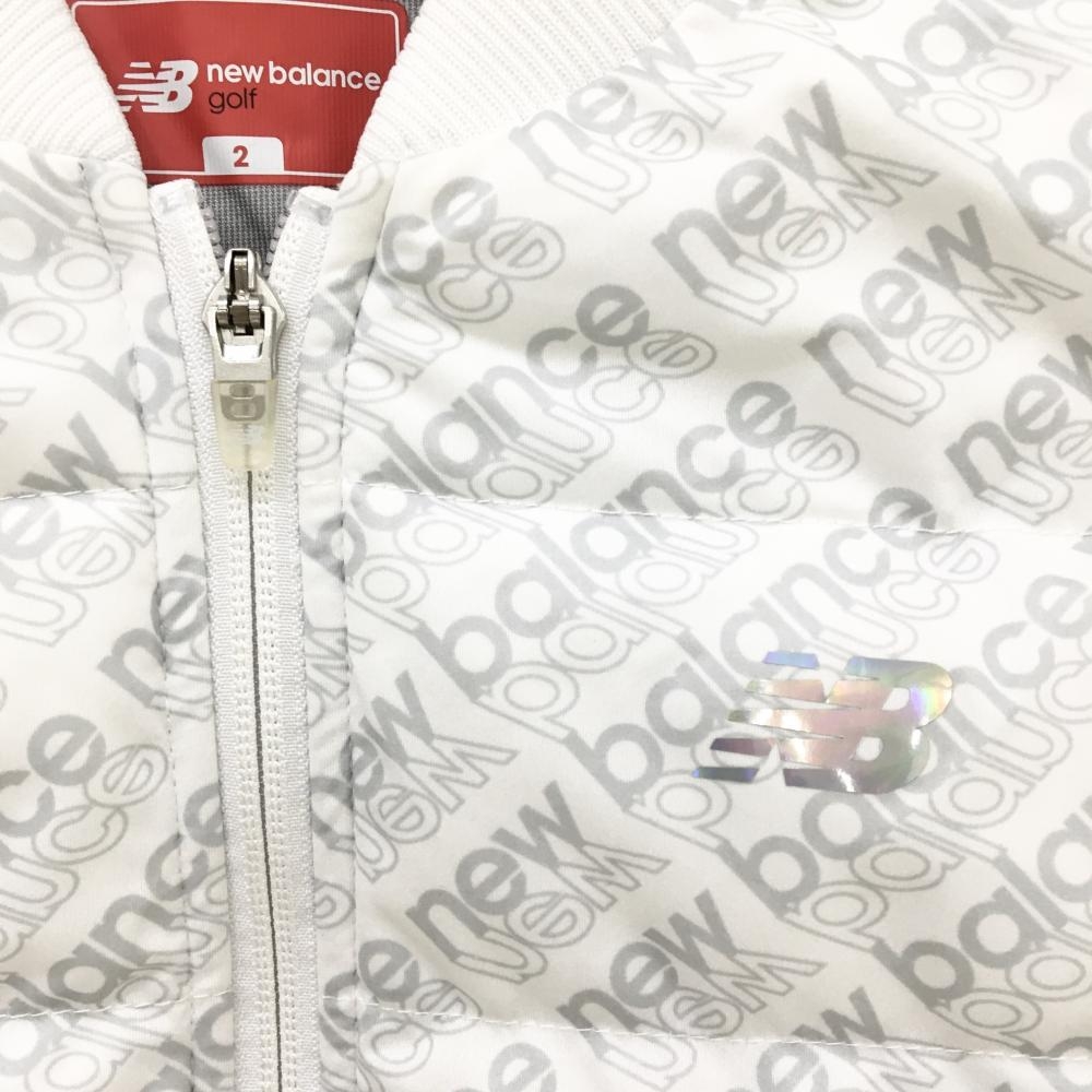ニューバランスゴルフ 中綿ボアベスト 白×ライトグレー ロゴ総柄 レディース 2(L) ゴルフウェア New Balance