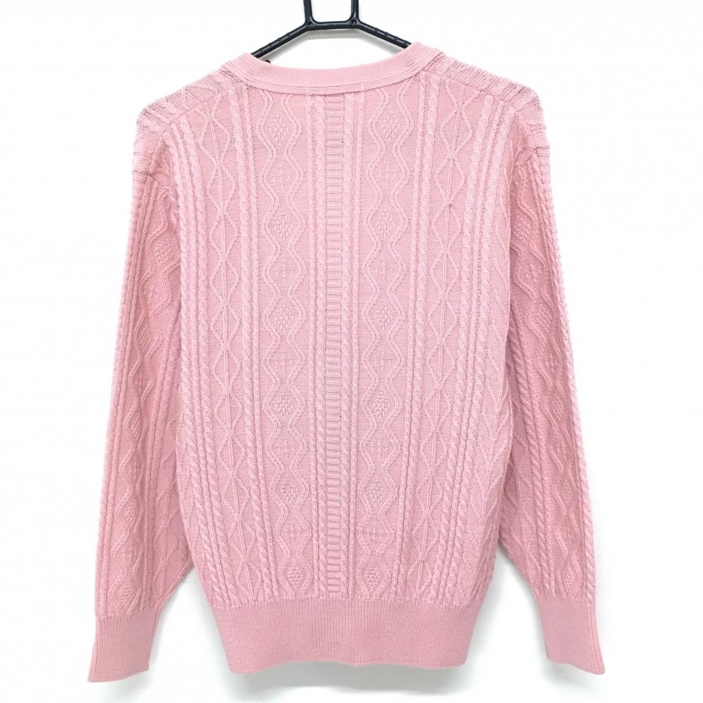 【美品】ブラックアンドホワイト カーディガン ライトピンク 総柄 ウール100% ニット メンズ M ゴルフウェア Black&White