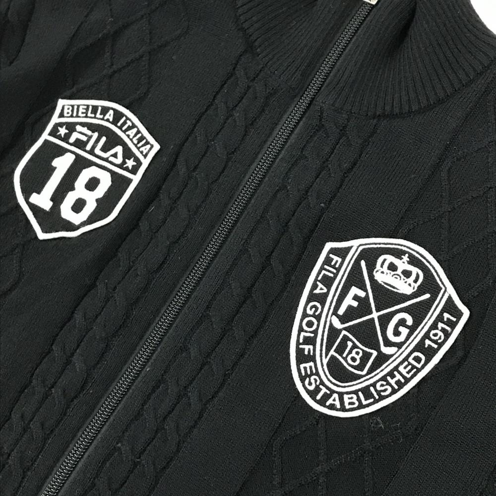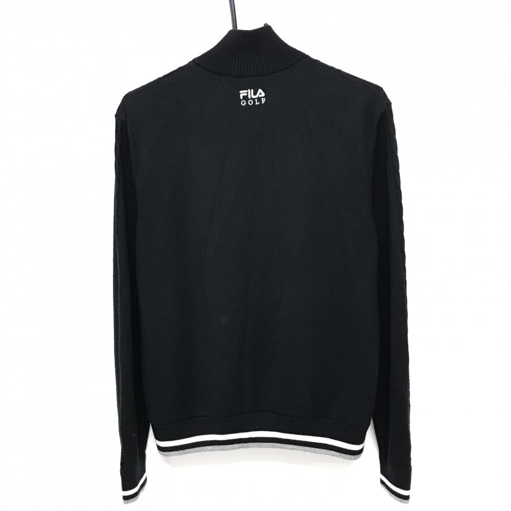フィラゴルフ ニットジャケット 黒×白 ロゴ刺しゅう 身頃裏地付き メンズ M ゴルフウェア FILA GOLF