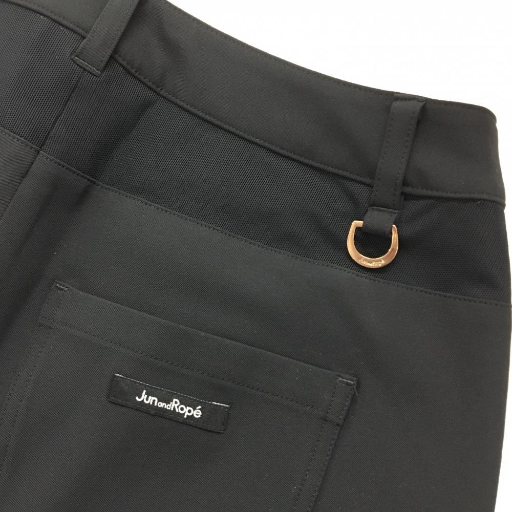 【超美品】ジュンアンドロペ ストレッチパンツ 黒 腰・内側サイドメッシュ 裾スリット レディース M ゴルフウェア JUN&ROPE