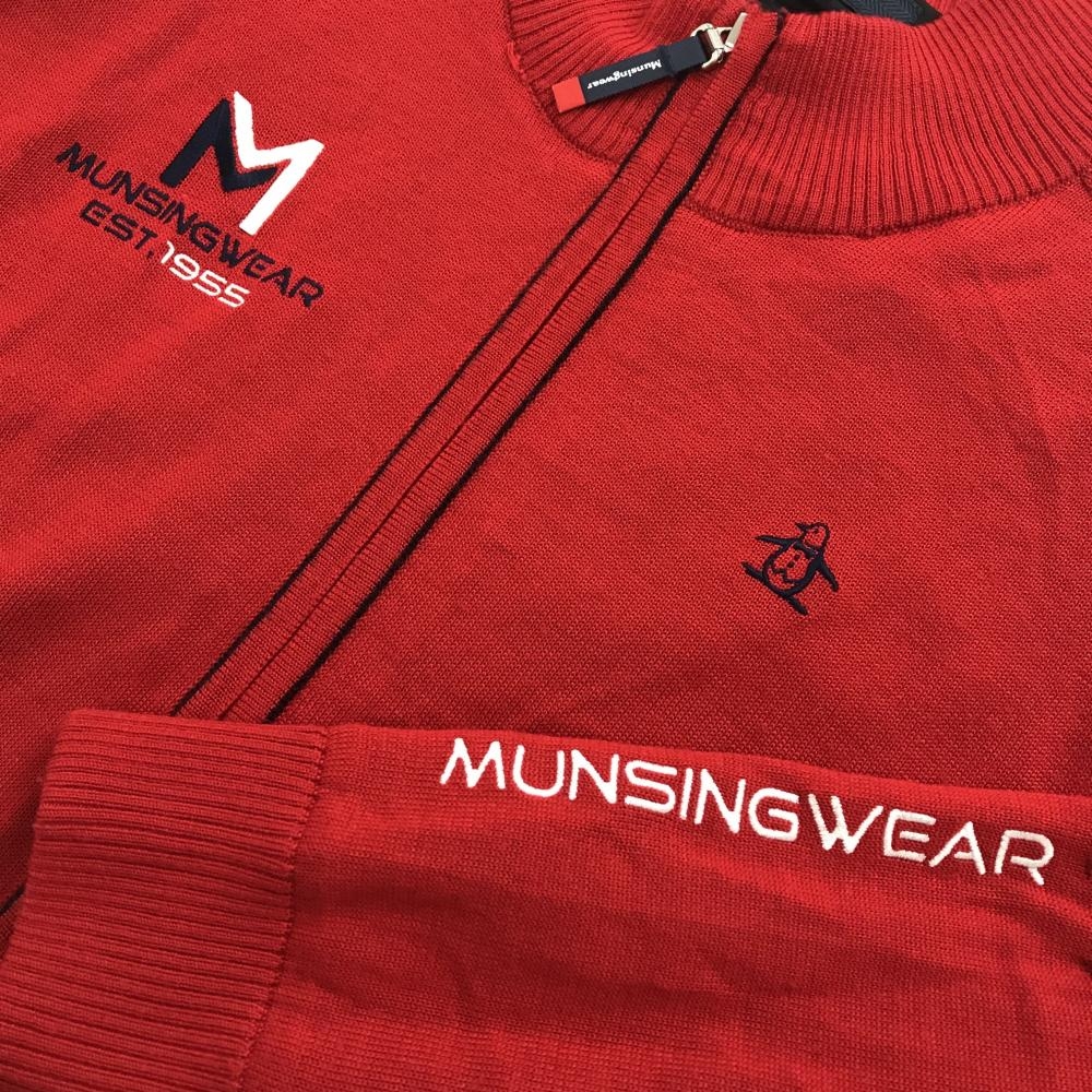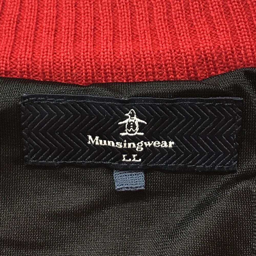 マンシングウェア ニットジャケット レッド×ネイビー ロゴ刺しゅう 裏地付き ウール混 メンズ LL ゴルフウェア Munsingwear