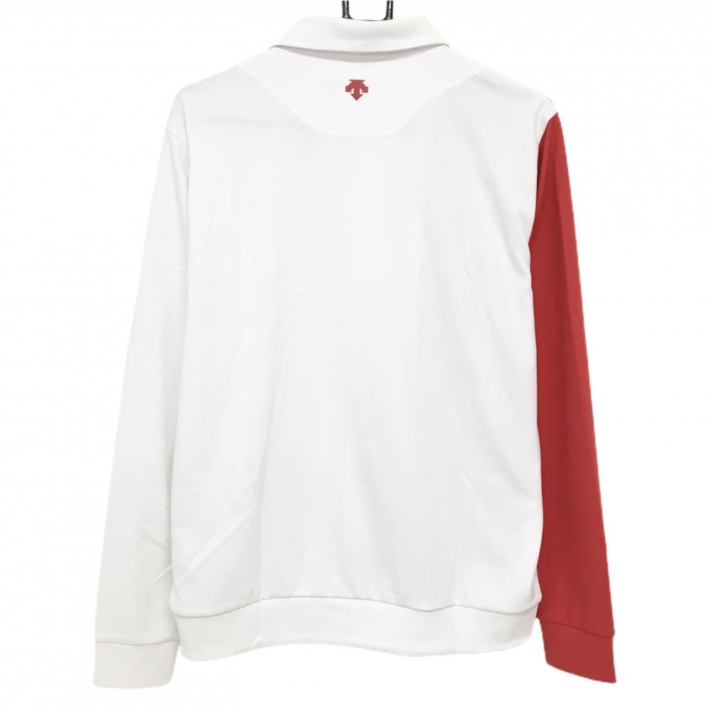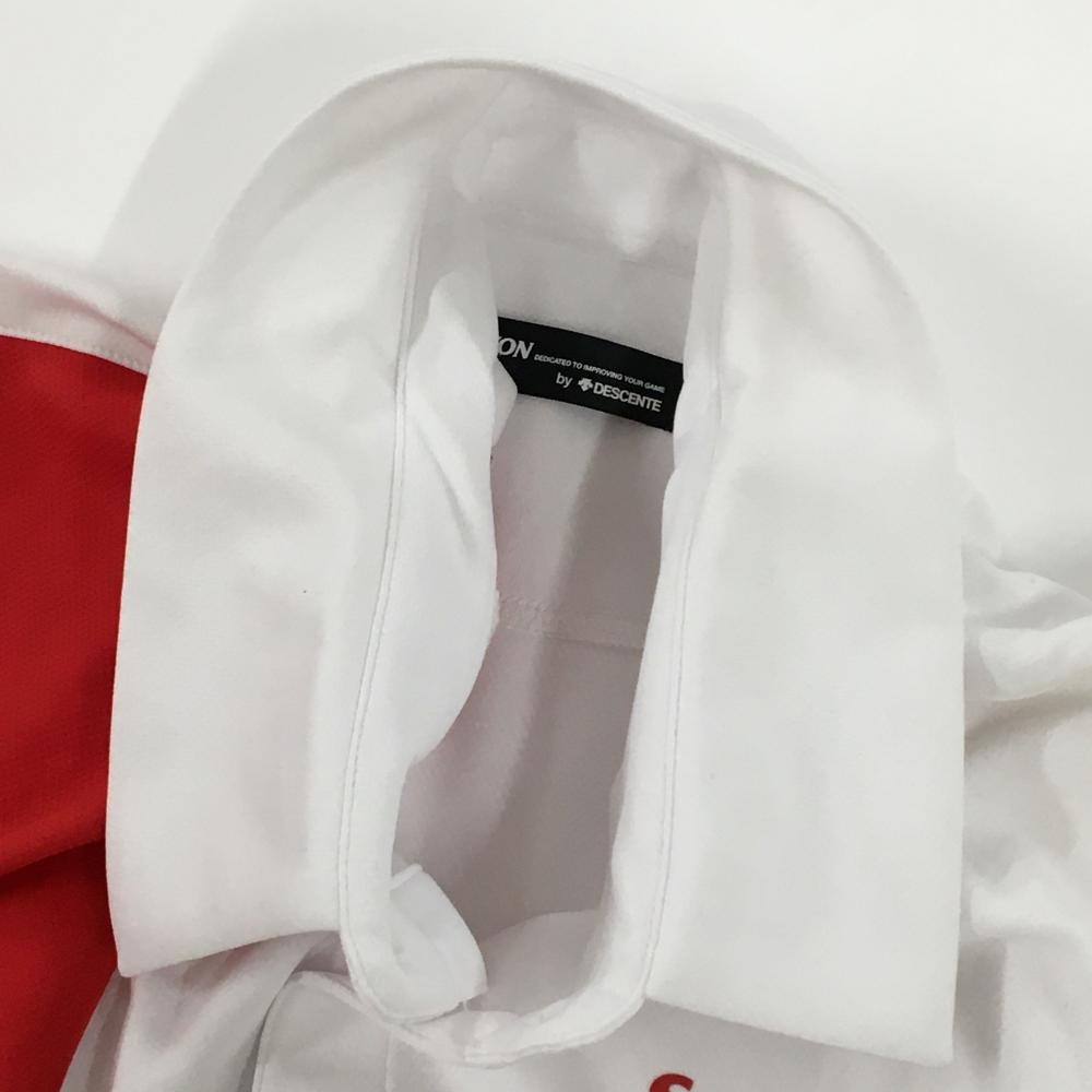 スリクソンバイデサント 長袖ポロシャツ 白×レッド ロゴプリント メンズ LL ゴルフウェア SRIXON