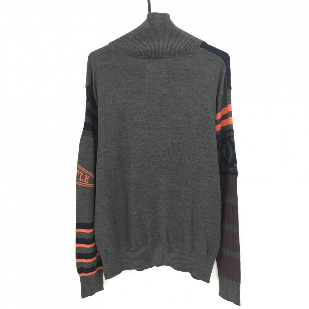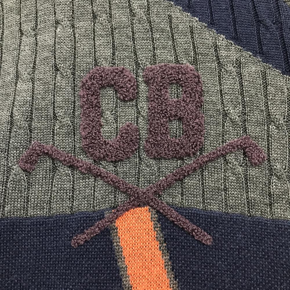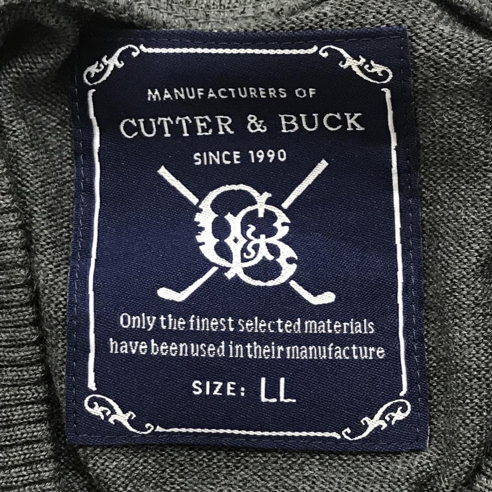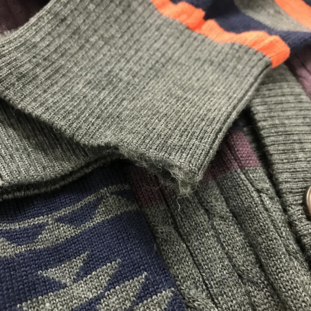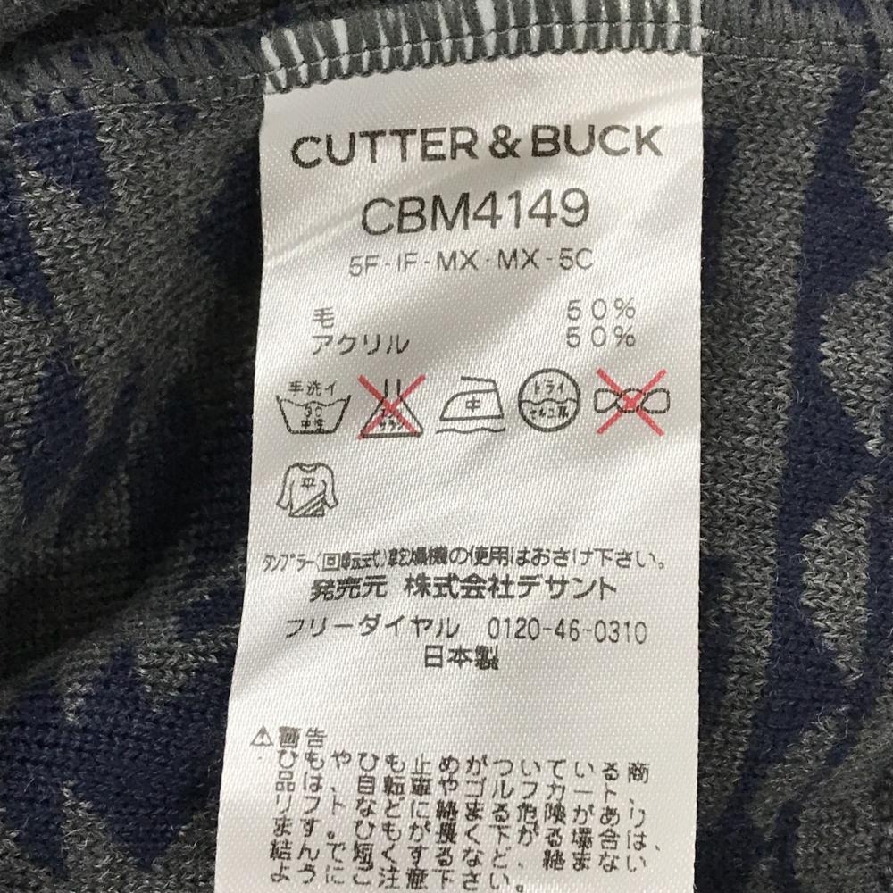 【美品】カッターアンドバック カーディガン グレー×ネイビー 総柄 ウール混 メンズ LL ゴルフウェア CUTTER&BUCK