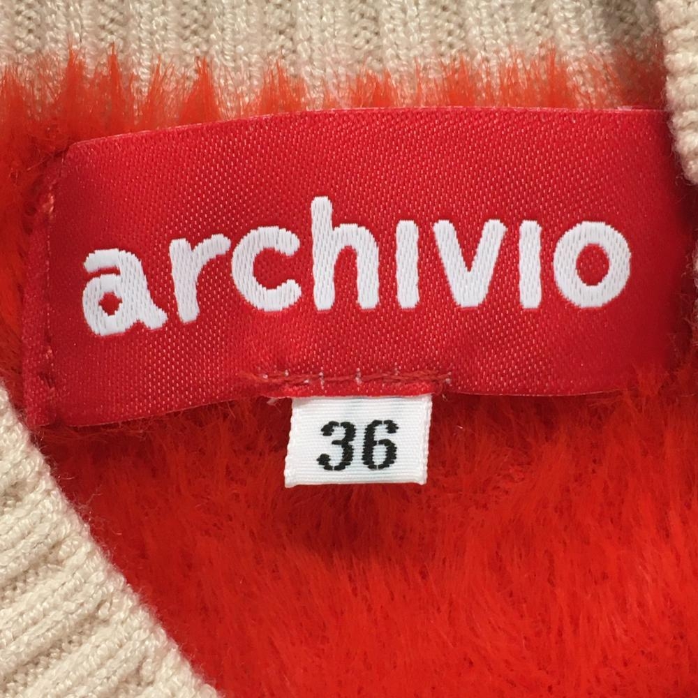 【超美品】アルチビオ セーター オレンジレッド×ベージュ シャギーニット レディース 36(S) ゴルフウェア 2023年モデル archivio
