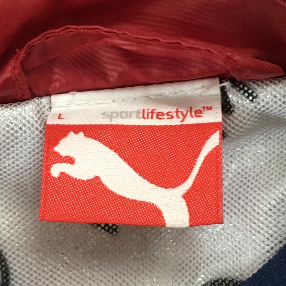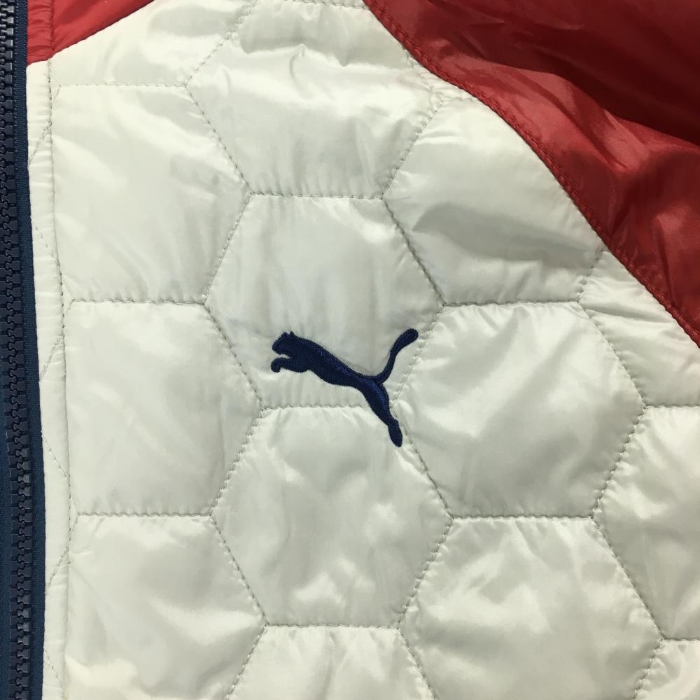 プーマ 中綿ジップパーカー ライトグレー×レッド 切替 ロゴ刺しゅう ジャケット メンズ L ゴルフウェア PUMA