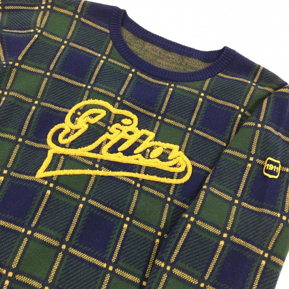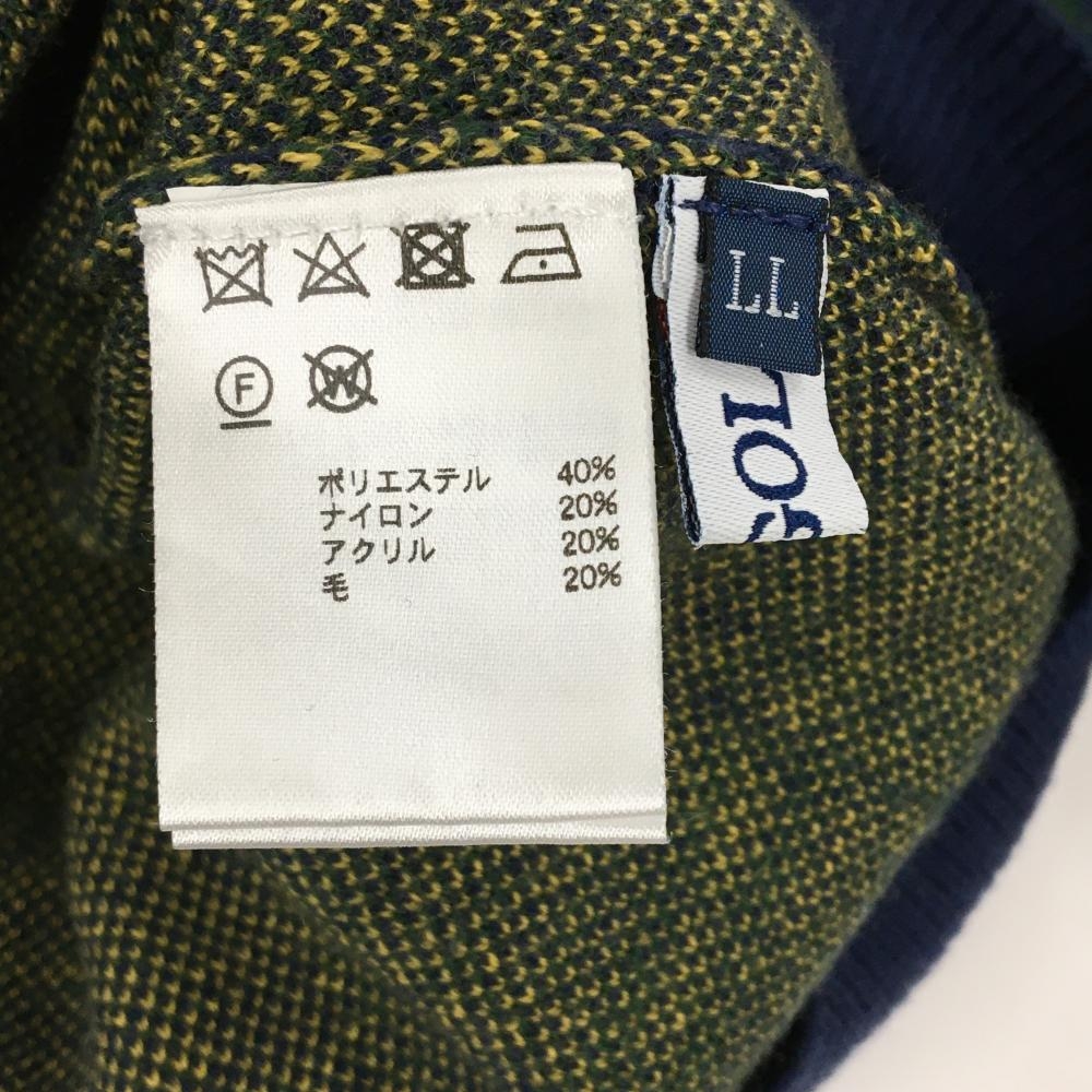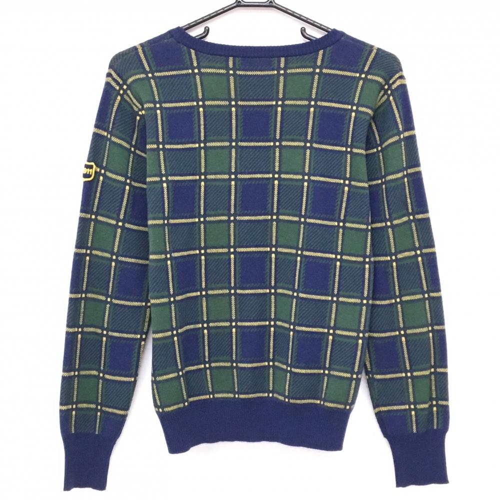 【超美品】フィラゴルフ セーター グリーン系×ネイビー チェック調 立体ロゴ ウール混 ニット レディース LL ゴルフウェア FILA GOLF