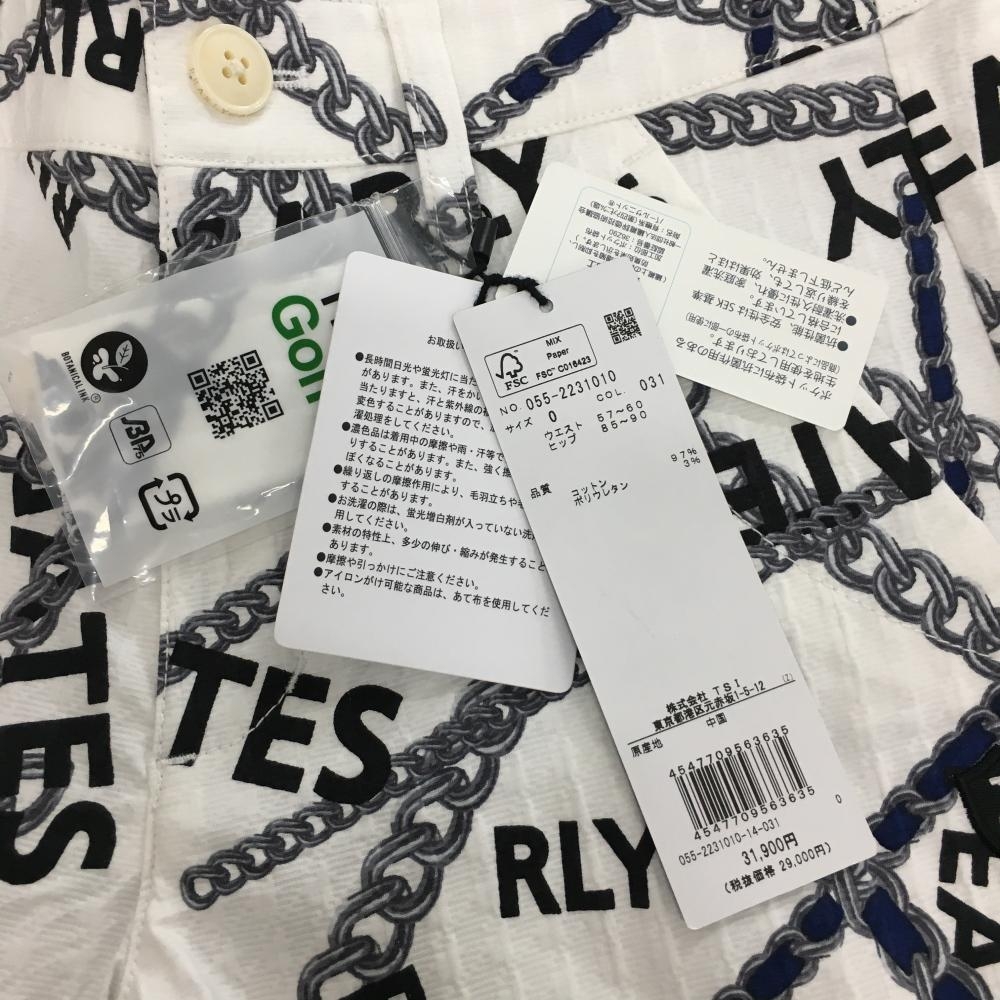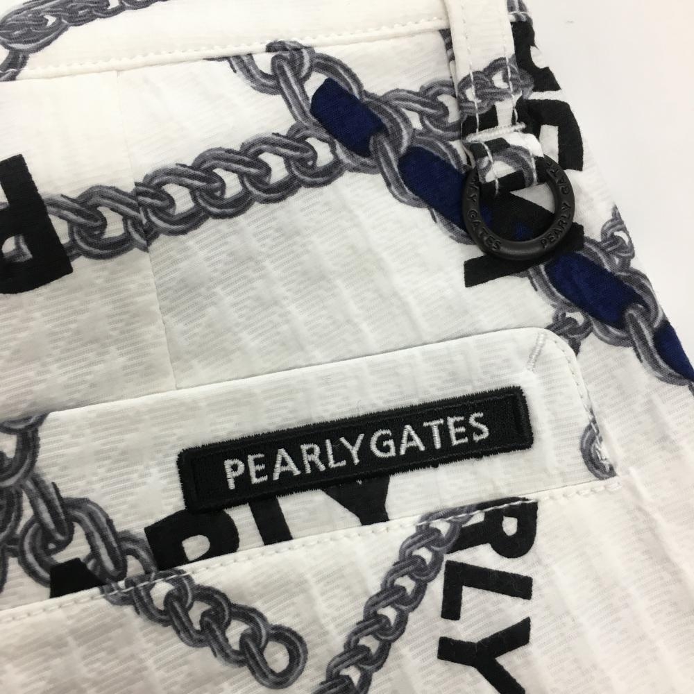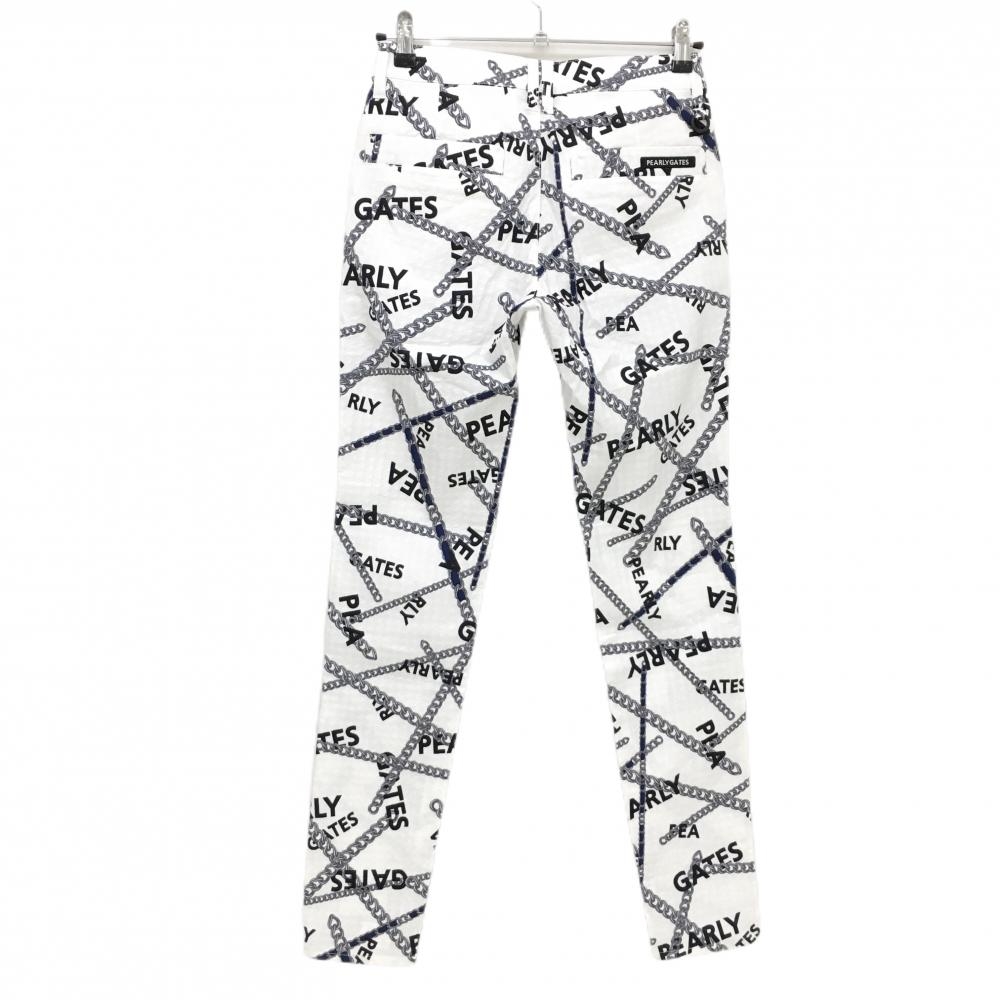 【新品】パーリーゲイツ パンツ 白×グレー チェーン柄 織生地 レディース 0(S) ゴルフウェア PEARLY GATES