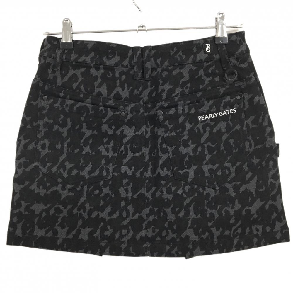 【新品】パーリーゲイツ スカート ダークグレー×黒 千鳥柄 レオパード ロゴ白 ストレッチ レディース 0(S) ゴルフウェア PEARLY GATES