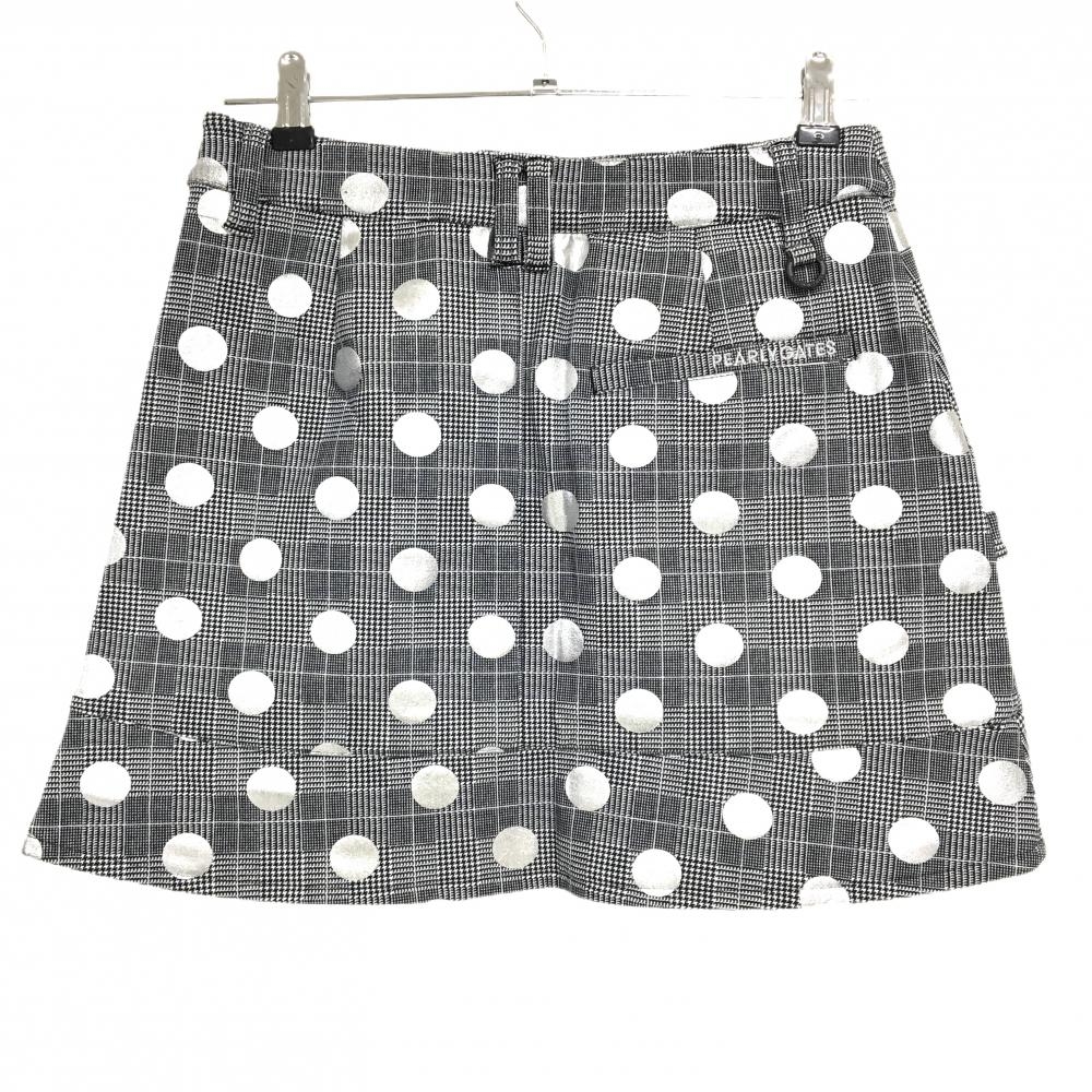 【新品】パーリーゲイツ スカート 黒×白×シルバー ドット柄 チェック 裏微起毛 レディース 0(S) ゴルフウェア PEARLY GATES