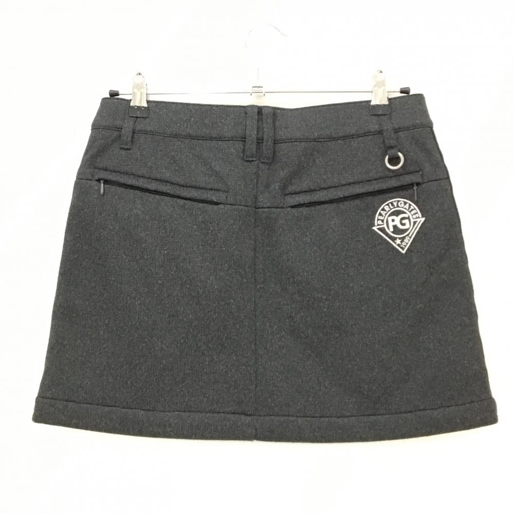 【美品】パーリーゲイツ スカート 杢グレー×黒 サイドロゴライン 裏起毛 レディース 1(M) ゴルフウェア PEARLY GATES