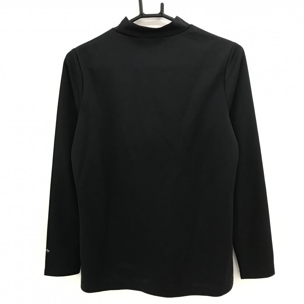 【美品】キャロウェイ 長袖ハイネックシャツ 黒×グレー 胸ロゴプリント レディース L ゴルフウェア Callaway
