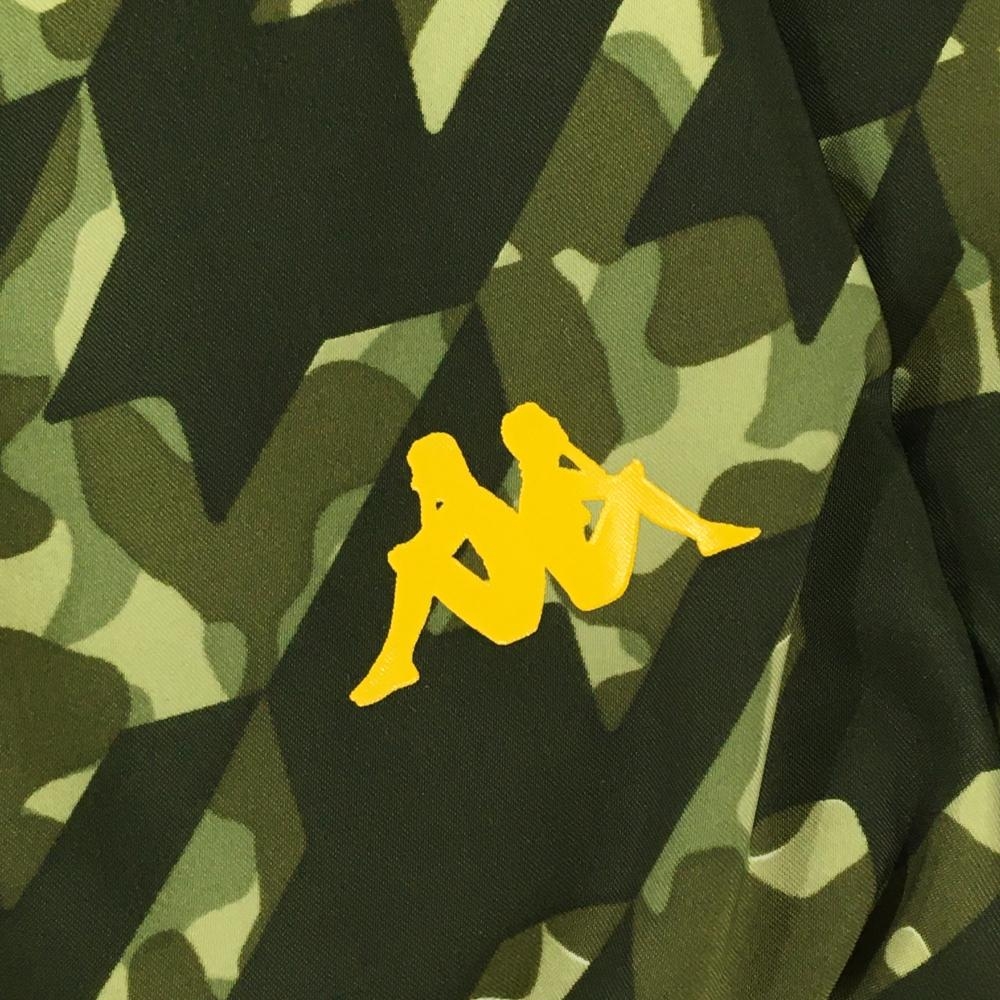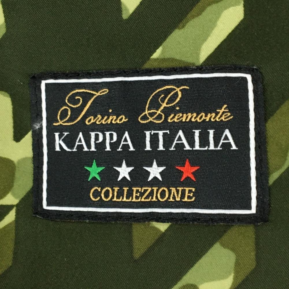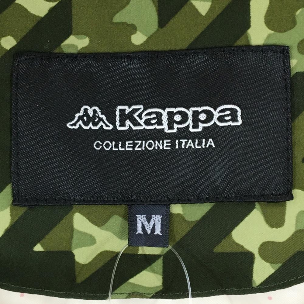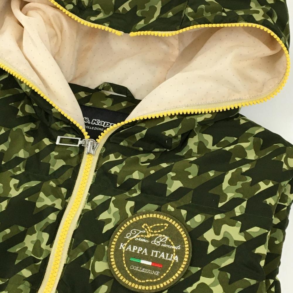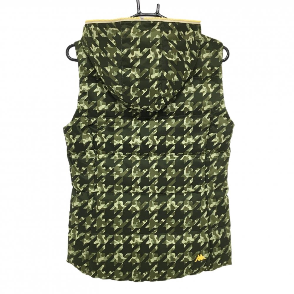 【超美品】カッパ ダウンベスト カーキ×グリーン カモフラ 迷彩 千鳥格子 フード付き 刺しゅうワッペン レディース M ゴルフウェア Kappa