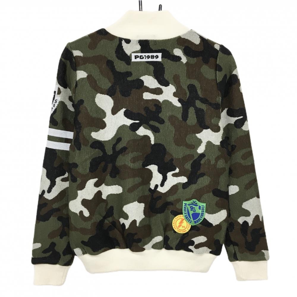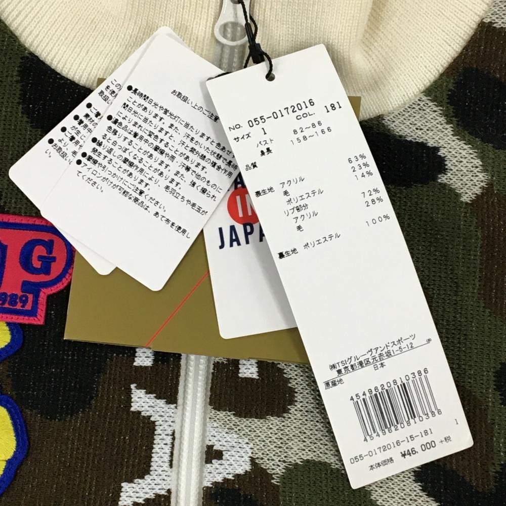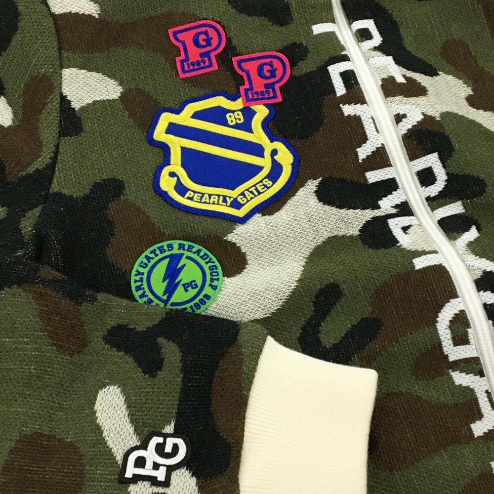 【新品】パーリーゲイツ ニットジャケット カーキ×黒×白 カモフラ DIAPLEX 裏地付き 迷彩 レディース 1(M) ゴルフウェア PEARLY GATES