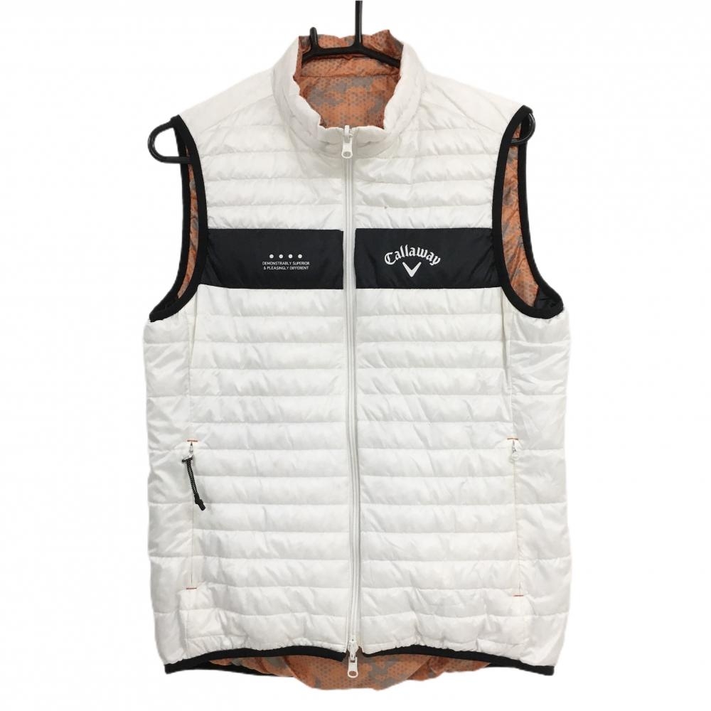 キャロウェイ リバーシブルダウンベスト オレンジ×グレー 裏白 身頃柄 サイド切替 ロゴワッペン 白地 メンズ M ゴルフウェア Callaway