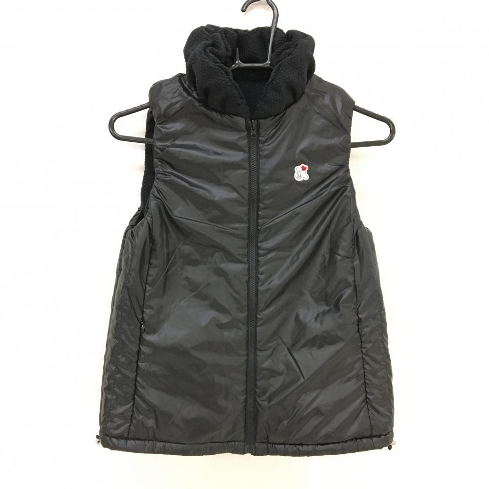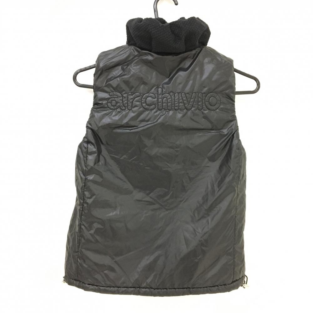 【美品】アルチビオ 中綿リバーシブルベスト 黒 異素材 立体ロゴ 裾ドローコード レディース 36(S) ゴルフウェア archivio