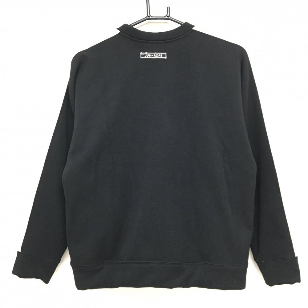 【美品】ジュンアンドロペ トレーナー 黒×白 袖ライン 裏起毛 レディース S ゴルフウェア JUN&ROPE