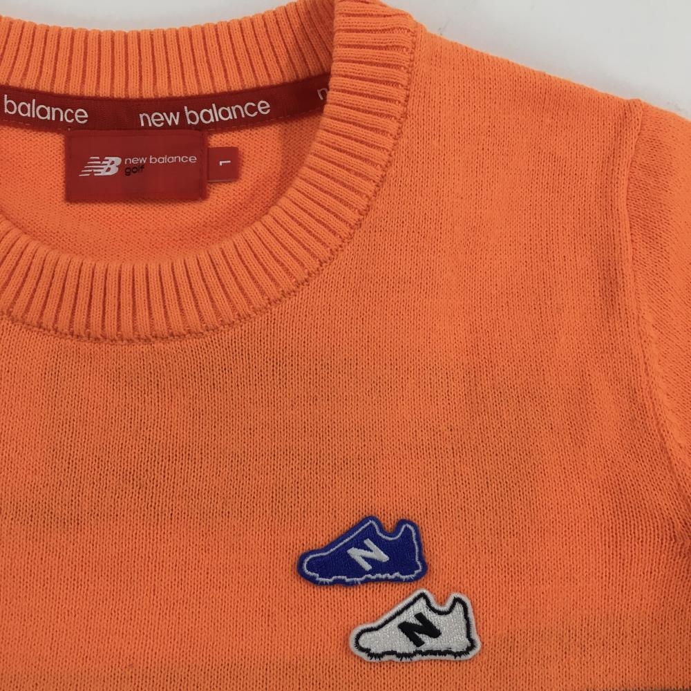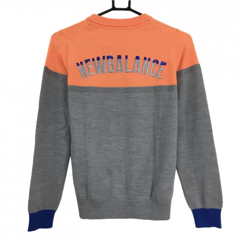 【美品】ニューバランスゴルフ セーター グレー×オレンジ×ブルー バイカラー 後ロゴ刺しゅう レディース 1(M) ゴルフウェア New Balance