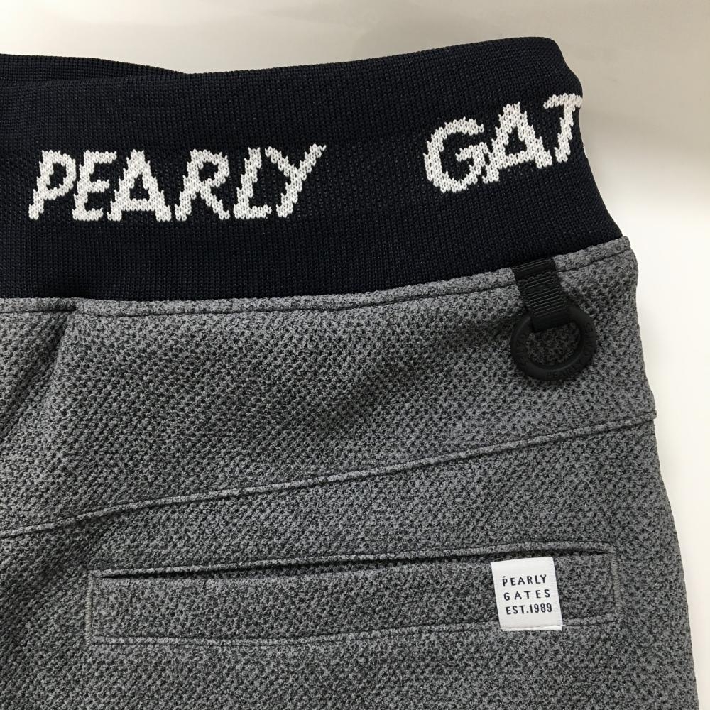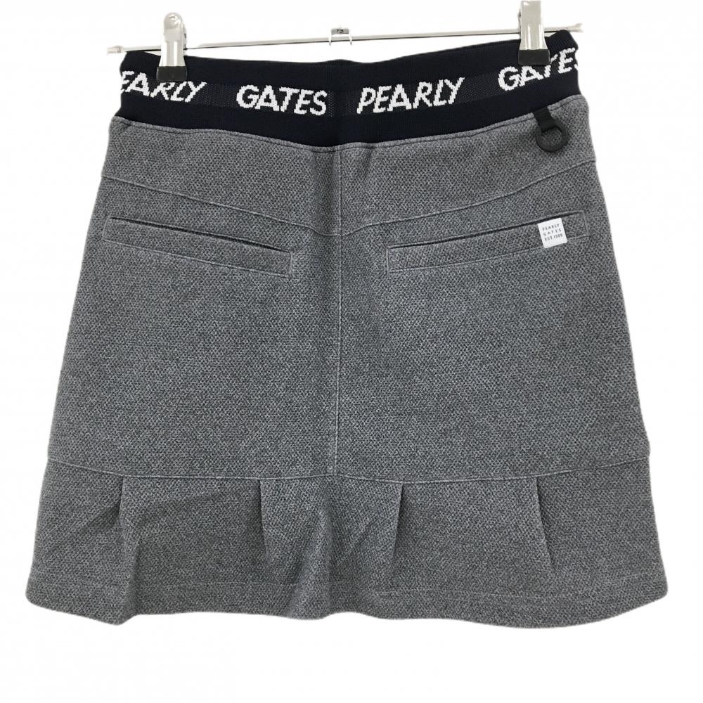 【新品】パーリーゲイツ スカート グレー×ネイビー ロゴプリント ウエストゴム 調節紐 レディース 00(XS) ゴルフウェア PEARLY GATES