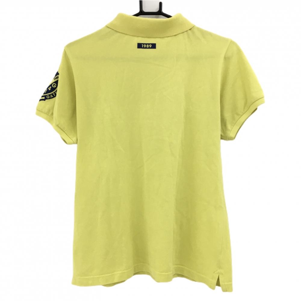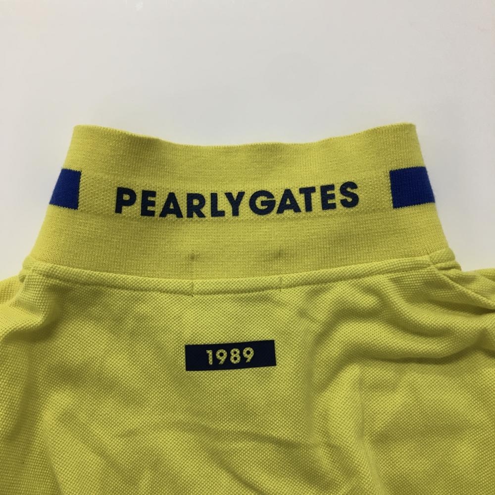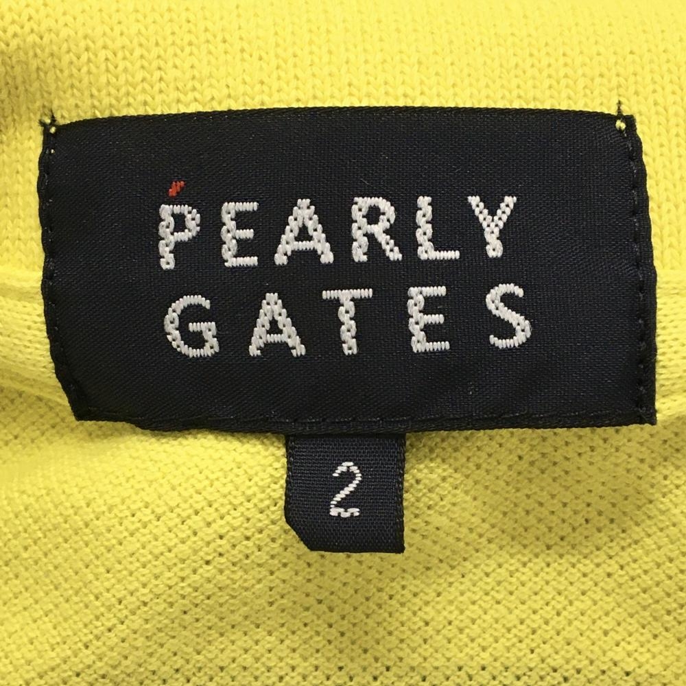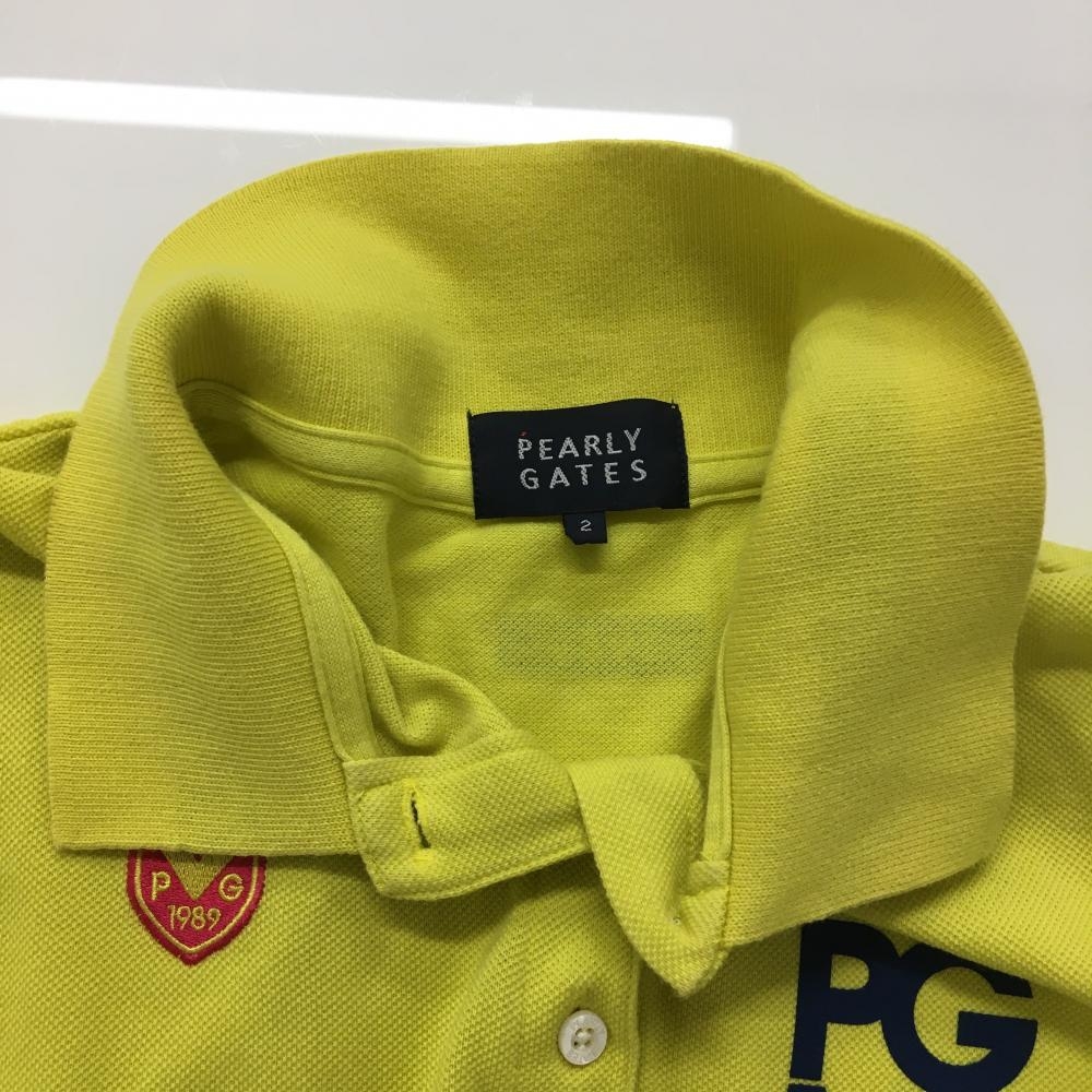 【美品】パーリーゲイツ 半袖ポロシャツ イエロー ロゴネイビー レディース 2(L) ゴルフウェア PEARLY GATES